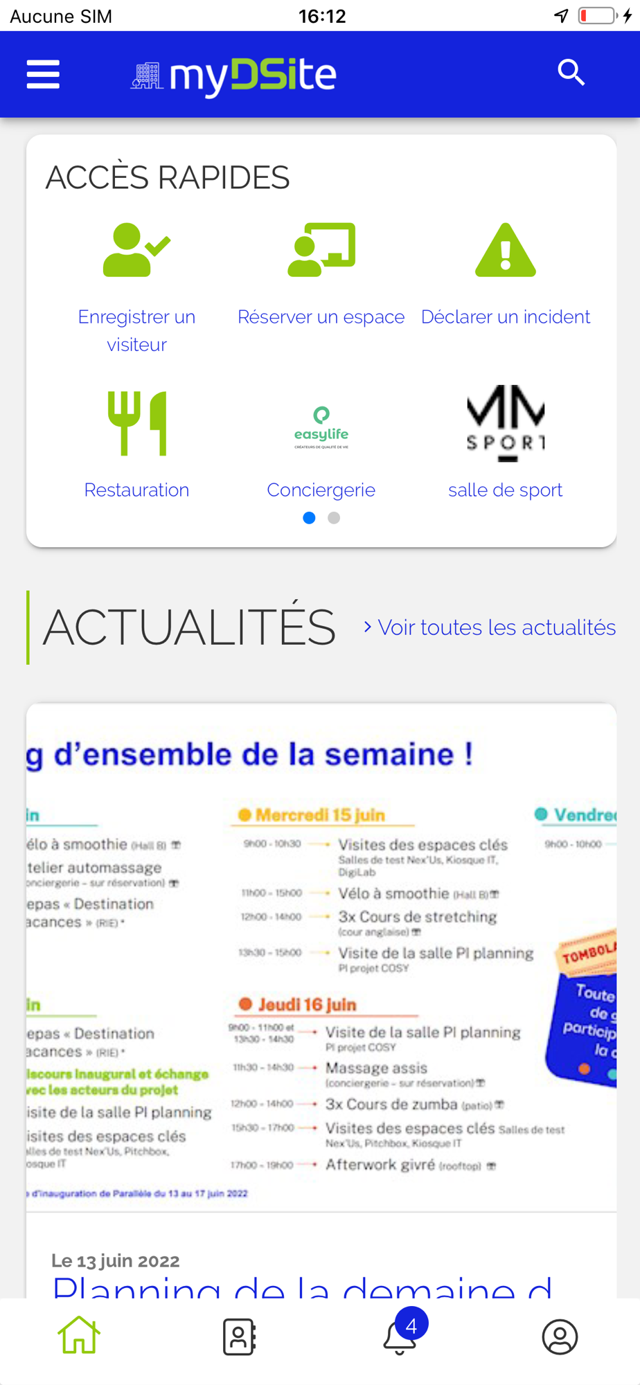 Vous pouvez également utiliser l'application pour réserver des salles, enregistrer un visiteur ou déclarer un incident.