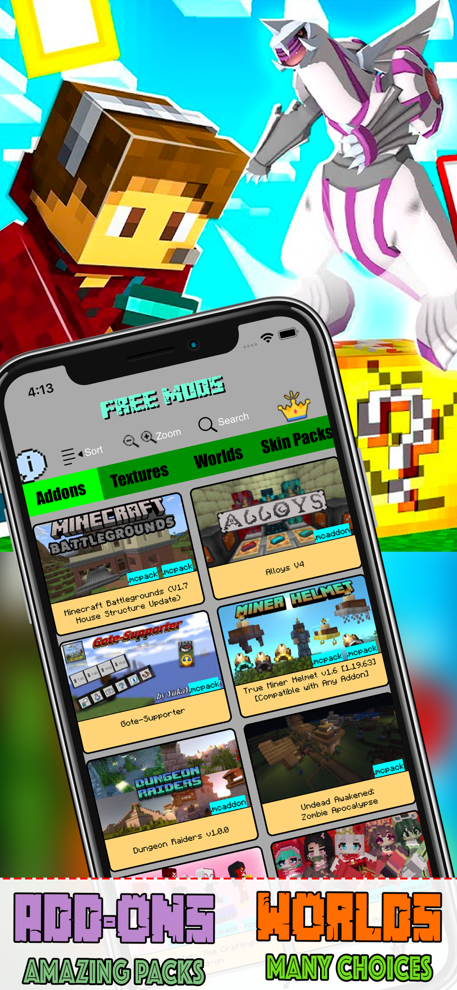 - 4.000+ SKIN PACKS: Boys, Girls, Anime, Horror, Superheroes,...