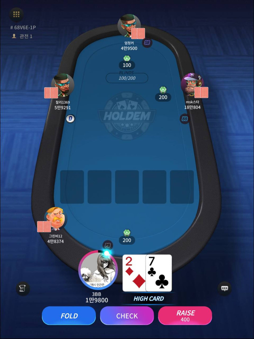- 6명~9명까지 플레이 하는 홀덤 기본의 맛 그대로