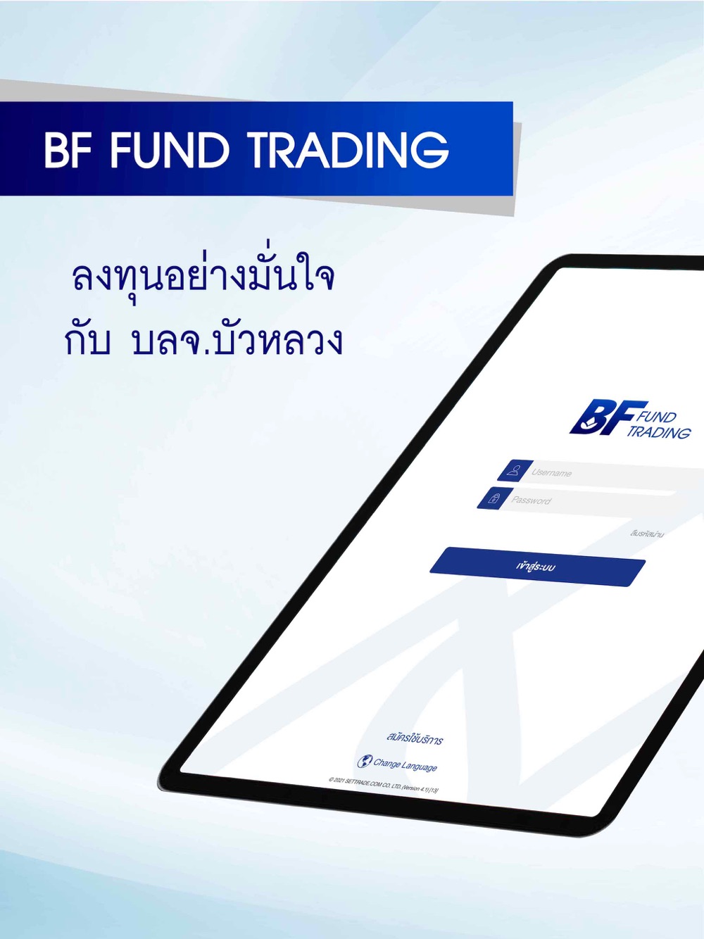 BF Fund Trading เป็นแอปพลิเคชันที่สามารถลงทุนกองทุนรวมของบลจ.บัวหลวง ได้โดยตรง ซึ่งผู้ลงทุนสามารถเปิดบัญชีกองทุนรวมแบบออนไลน์ รวมถึงการทำธุรกรรม ซื้อ ขาย สับเปลี่ยนหน่วยลงทุน พร้อมตรวจสอบสถานะคำสั่ง และติดตามพอร์ตการลงทุนได้ทุกที่ ทุกเวลา