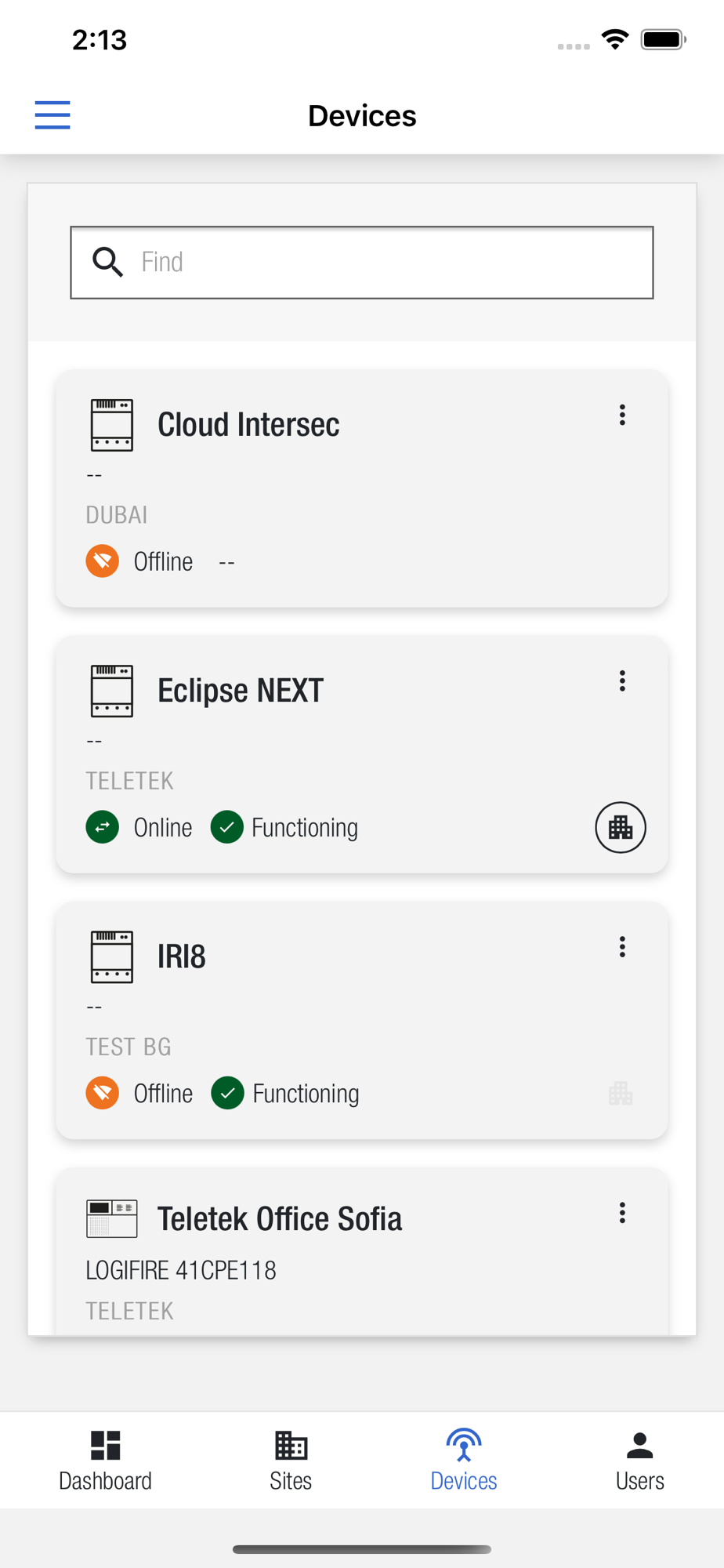 Teletek PRO provides remote access and real-time monitoring and maintenance of iRIS addressable fire alarm systems with secure connectivity. You can see the live status of your connected sites, check current and history events, as well as receive Push Notifications in case of event. The Teletek PRO App also allows you to provide faster and more efficient response and reduce maintenance time and effort.