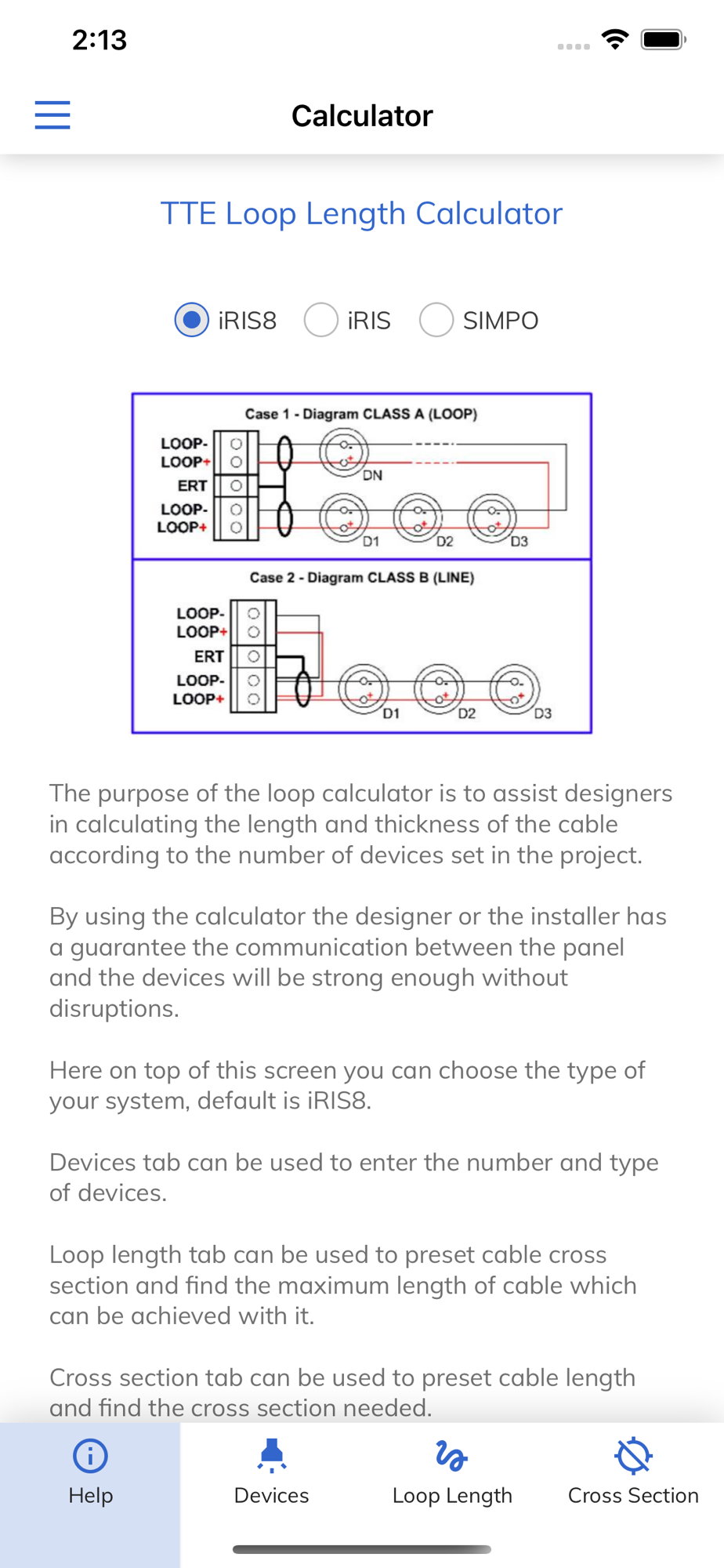 - Complimentary loop calculator to assist designers in calculating the length and thickness of the cable according to the number of devices set in the project