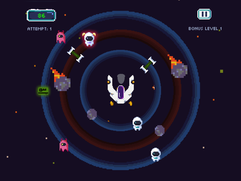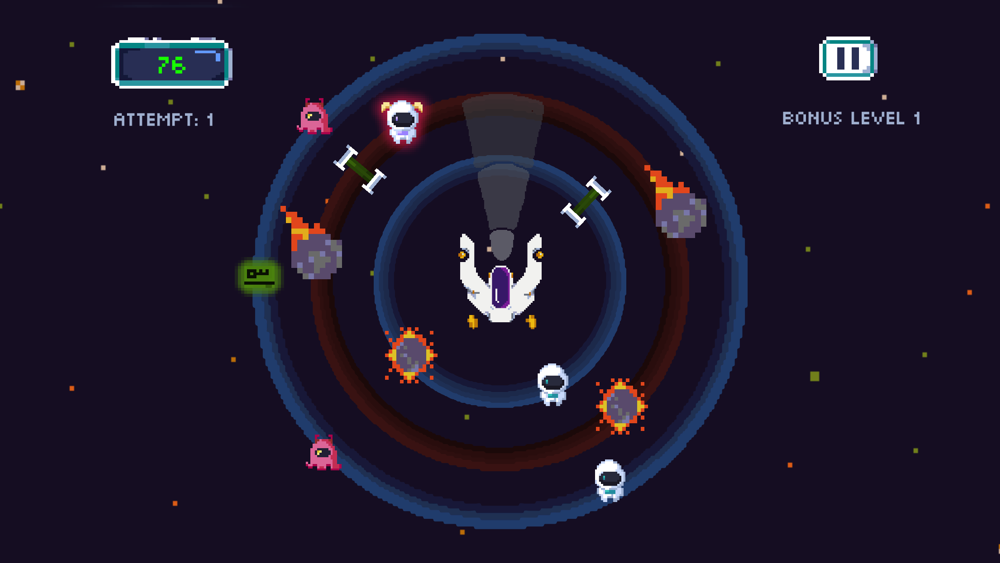 A 2D single-player strategy game about a rescue mission that takes place in space, and it is up to the rescue team to venture out and find the missing astronauts, to rescue them from the dangers of space. The player must rotate the rings and align the astronauts on top, for them to enter the ship safely, and escape.