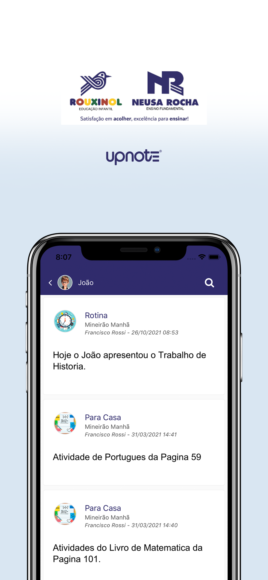 O aplicativo da Escola Rouxinol Neusa Rocha é destinado aos alunos e seus responsáveis, como forma de se manter informados sobre o calendário, eventos, comunicados e demais notificações da escola.