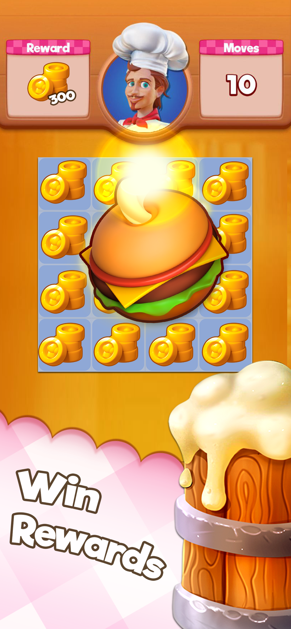 - Win rewards that will quickly help you go from beginner to the most sought-after chef on this restaurant-themed match game.