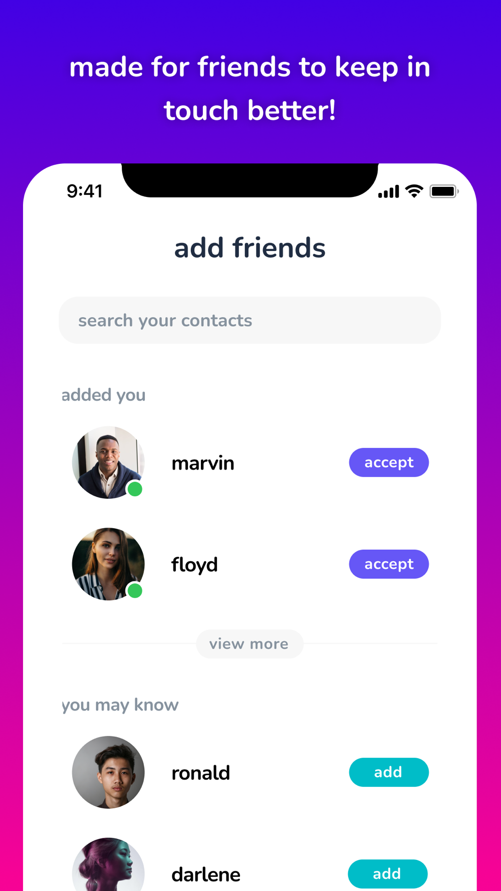 free for five is a way to have spontaneous phone catch-ups with your friends. it's just one button: tap when you're free and see who's around to join!