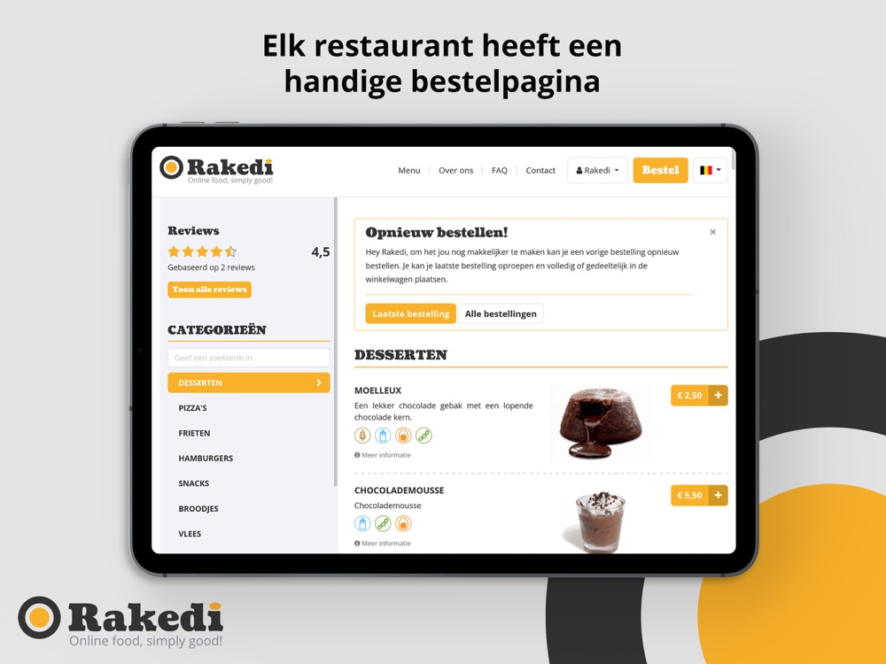 Bestel online bij jouw favoriete restaurant en vermijd lange wachttijden. Rakedi is gemakkelijk en hét meest uitgebreide platform!