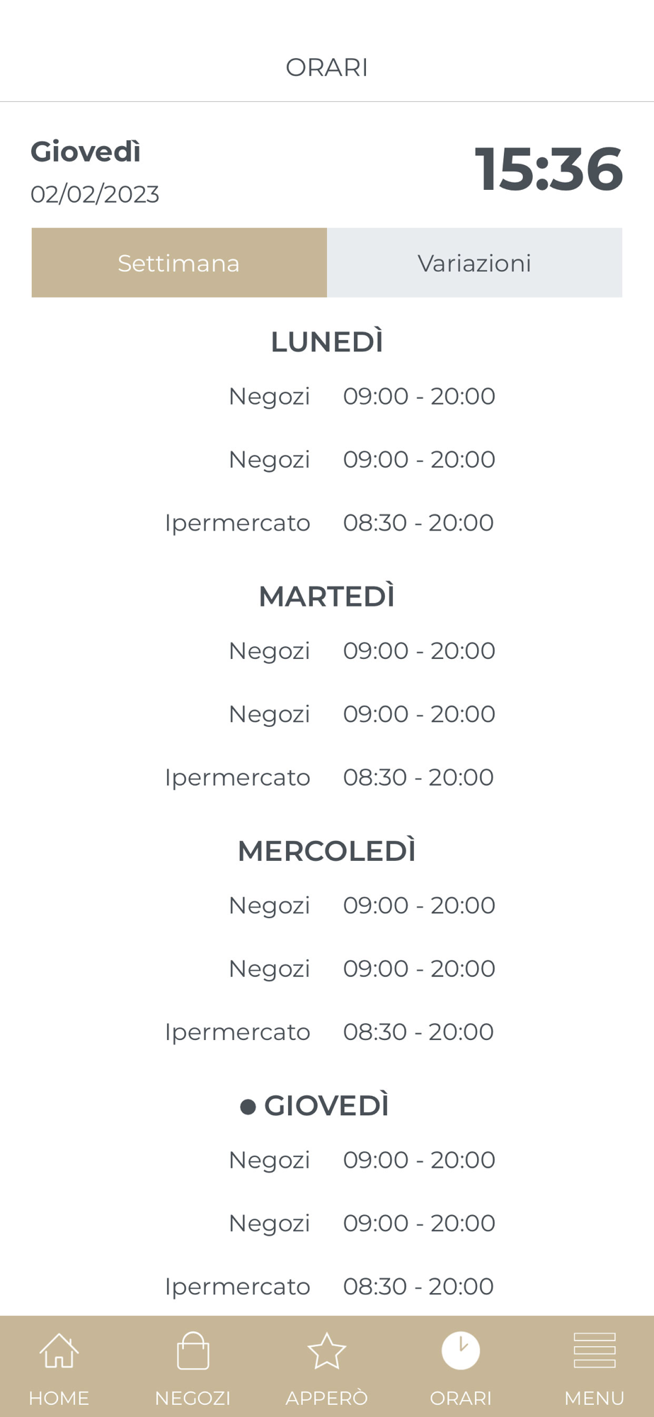 Puoi verificare gli orari di apertura, consultare l'elenco ed i contatti dei negozi e della direzione, conoscere gli eventi che si svolgeranno e le novità che verranno presentate.