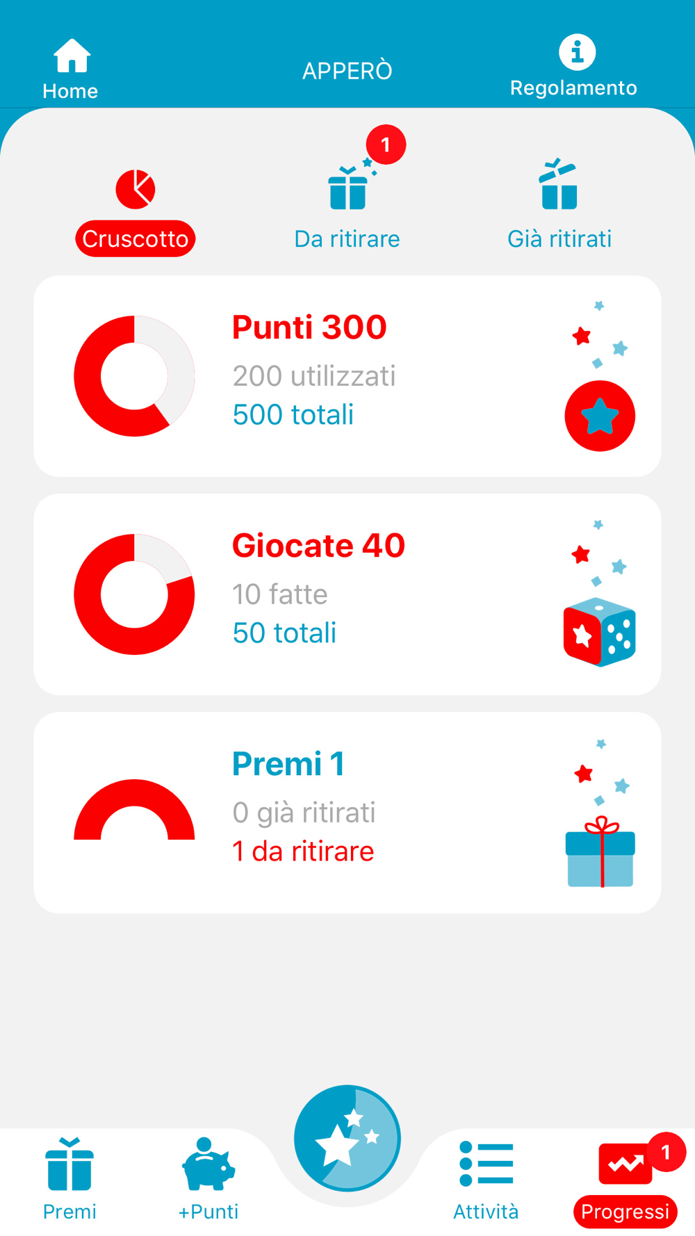 Controlla sull'App il tuo saldo punti, le tue giocate, i tuoi premi e le modalità per ritirarli.