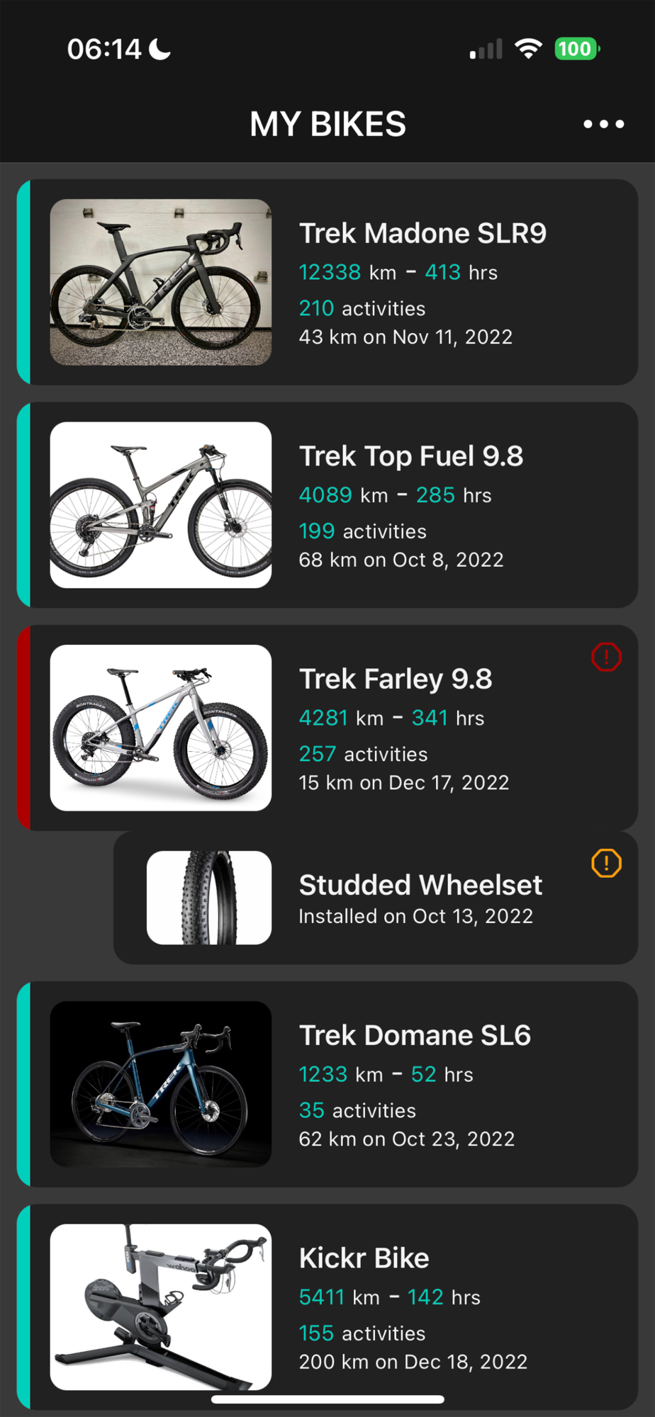 - The app downloads all your activities and calculates the wear of your parts.