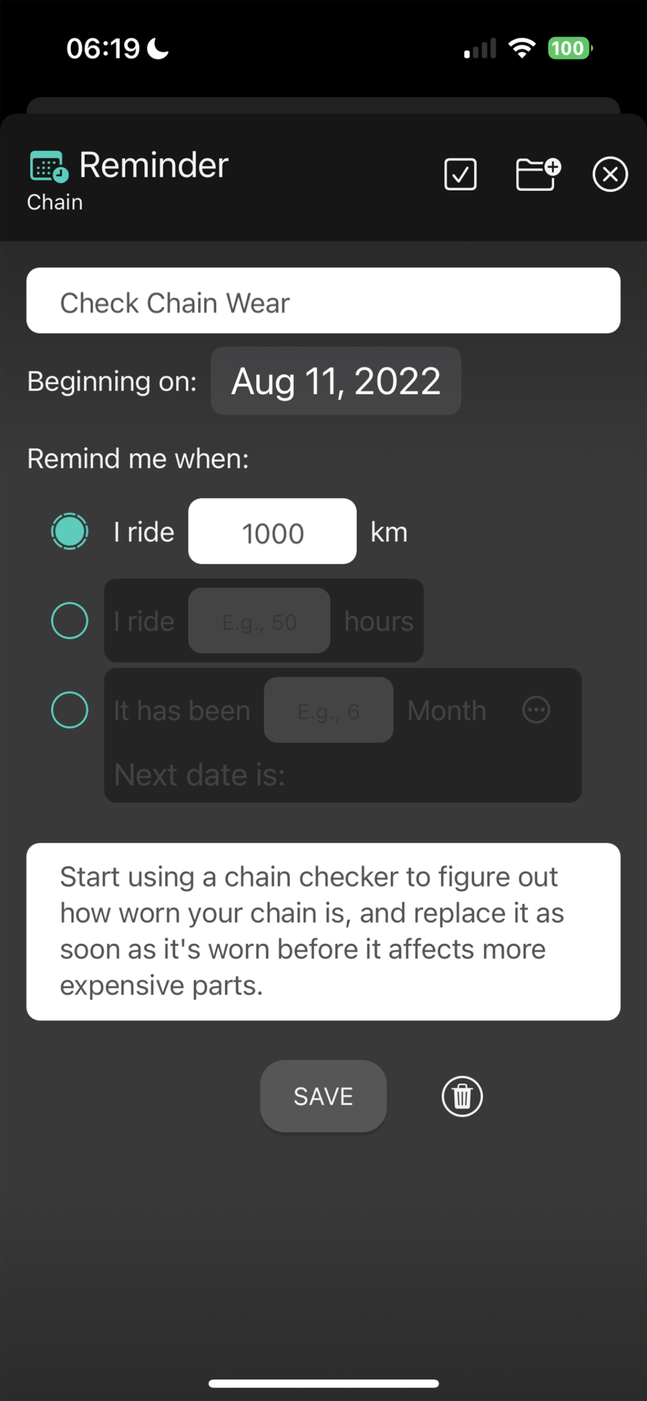 - Notifications for reminders are sent automatically as soon as you upload your ride.