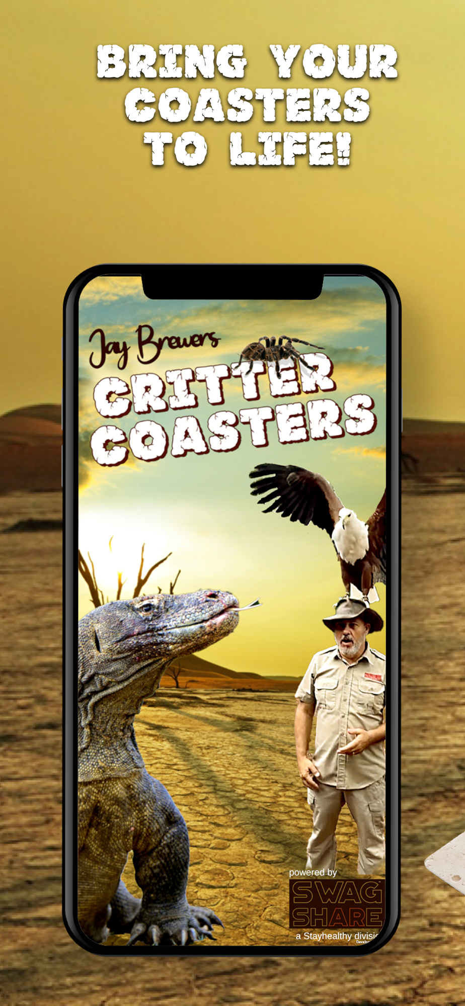 Critters in the house! Jay Brewer handles dangerous creatures every day. Now, with the new Augmented Reality Critter Coasters app, you can bring them into your home without the risk of bites, scratches, or dismemberment! Bring Jay Brewer's life size critters into your home with the magic of Augmented Reality!