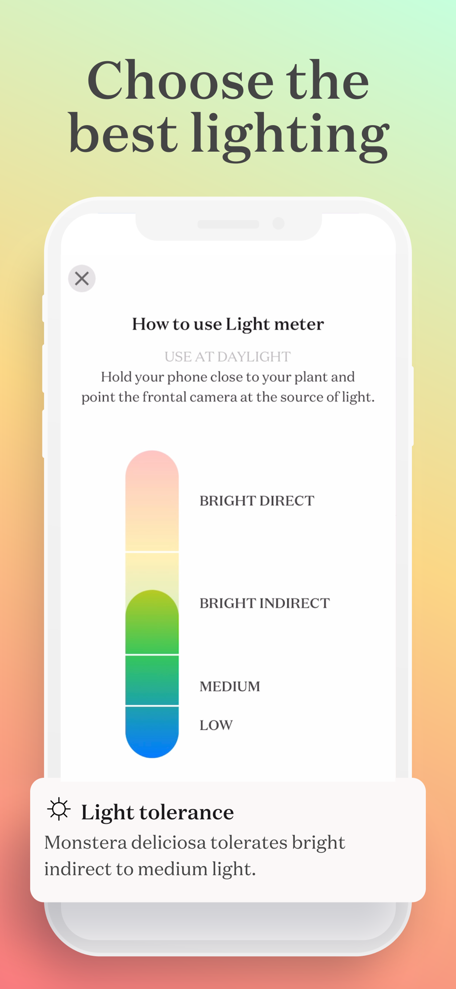Choose the best spot for your plant according to its light needs. Measure light levels that your plants receive throughout the day.