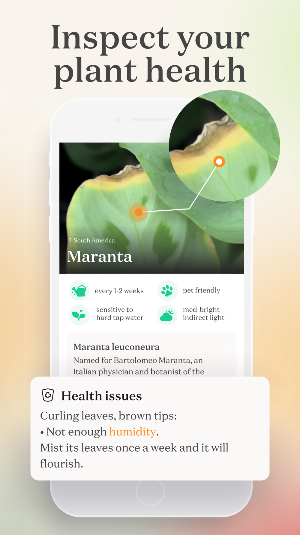 Discover the tips and set up reminders for various plant cares (water, mist, fertilize, repot).