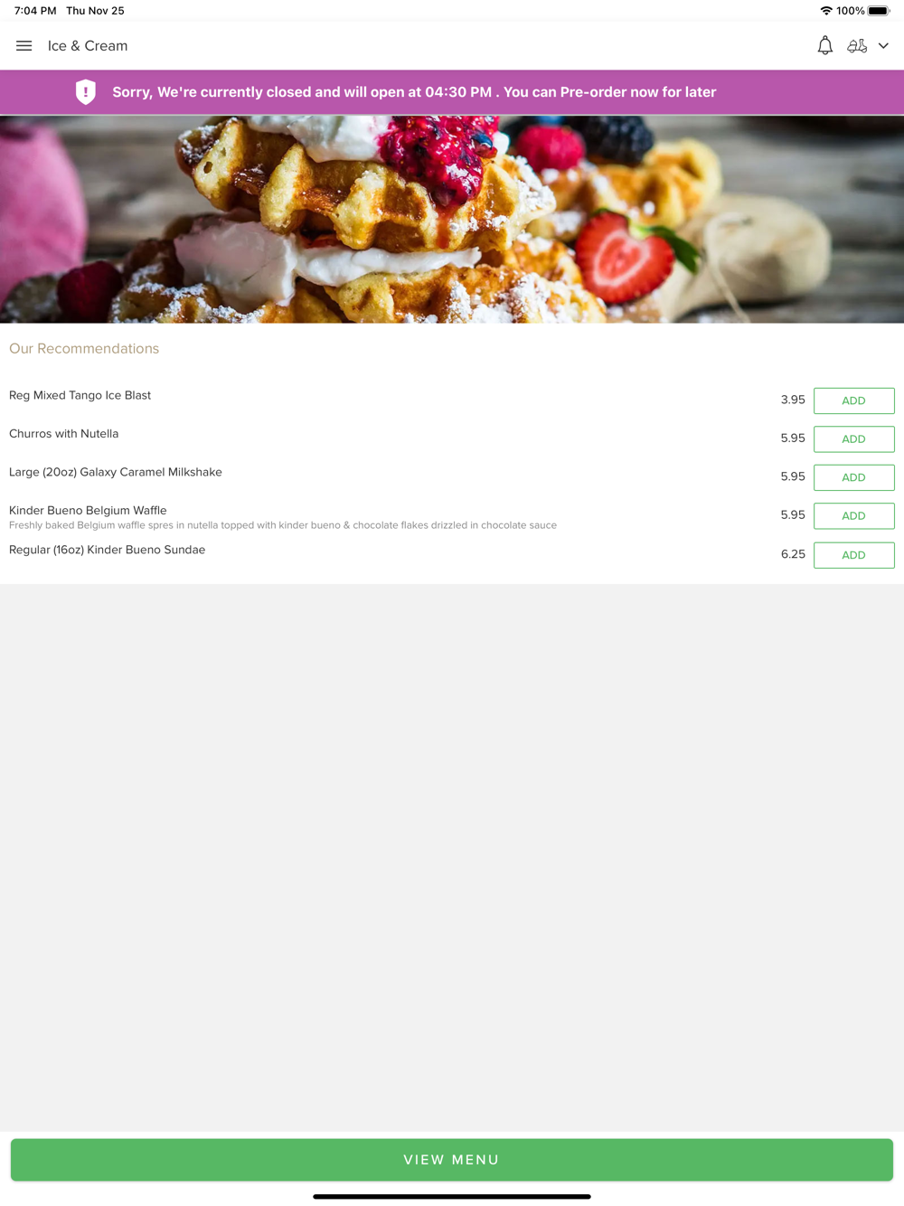 Our experienced and skilled staff create our mouth-watering desserts with the freshest and finest ingredients, to ensure the highest standard possible is provided to all our customers. You can find our entire menu on our app, which is always up to date. Why not give an old favourite a go, or try something new!.You can now order online, all your favourite desserts and many more delicious options, and have them delivered straight to your door in no time at all. Thank you for visiting. We hope you enjoy our online ordering app and your food.