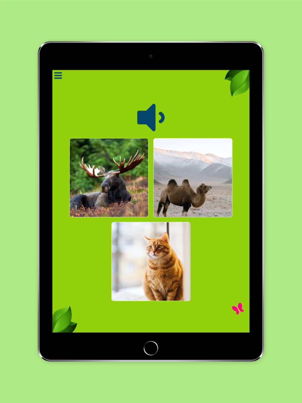 - mini game. Best for entertaining your child on its own. The goal is to find the animal by its voice