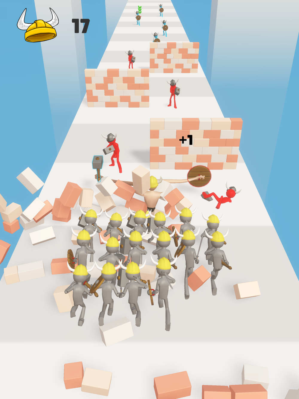Swipe between the hammer and shield to beat the enemies and turn them into allies.