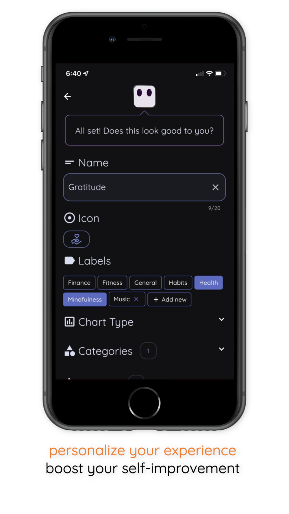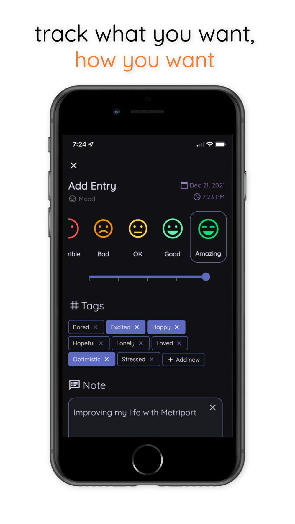 • Choose from a wide variety of metric templates to quantify your life; from gratitude, to finance trackers, and everything in between.