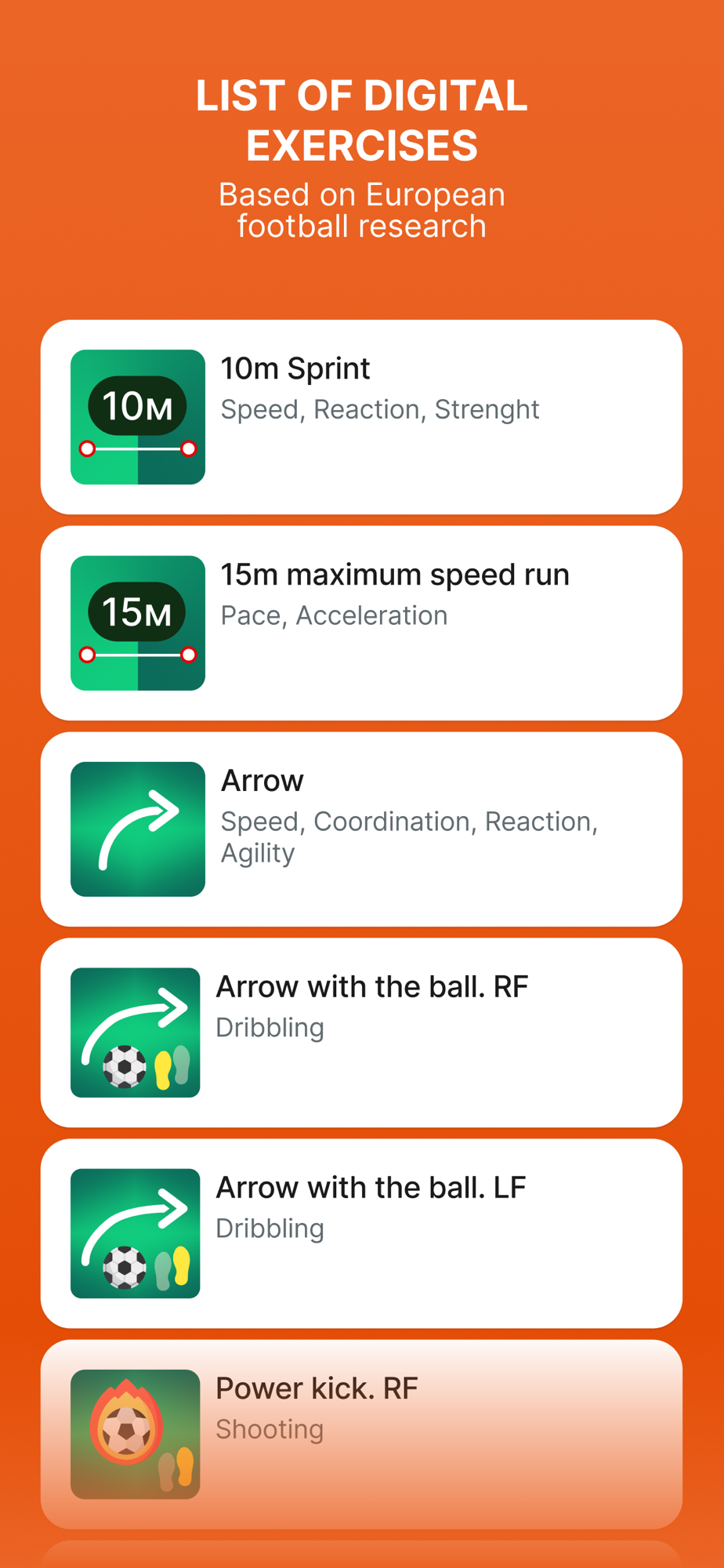 The tech app contains a set of soccer tests needed to track players' physical and technical performance.