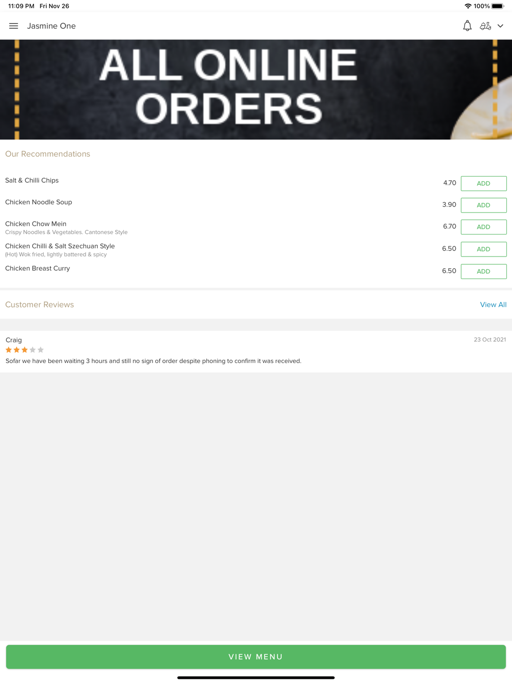 Order food online from Jasmine One! It's so easy to use fast and convenient. Try our new online app which contains our entire takeaway menu. Jasmine One is located in Giffnock. You can now order online all your favourite dishes and many more delicious options and have them delivered straight to your door in no time at all.