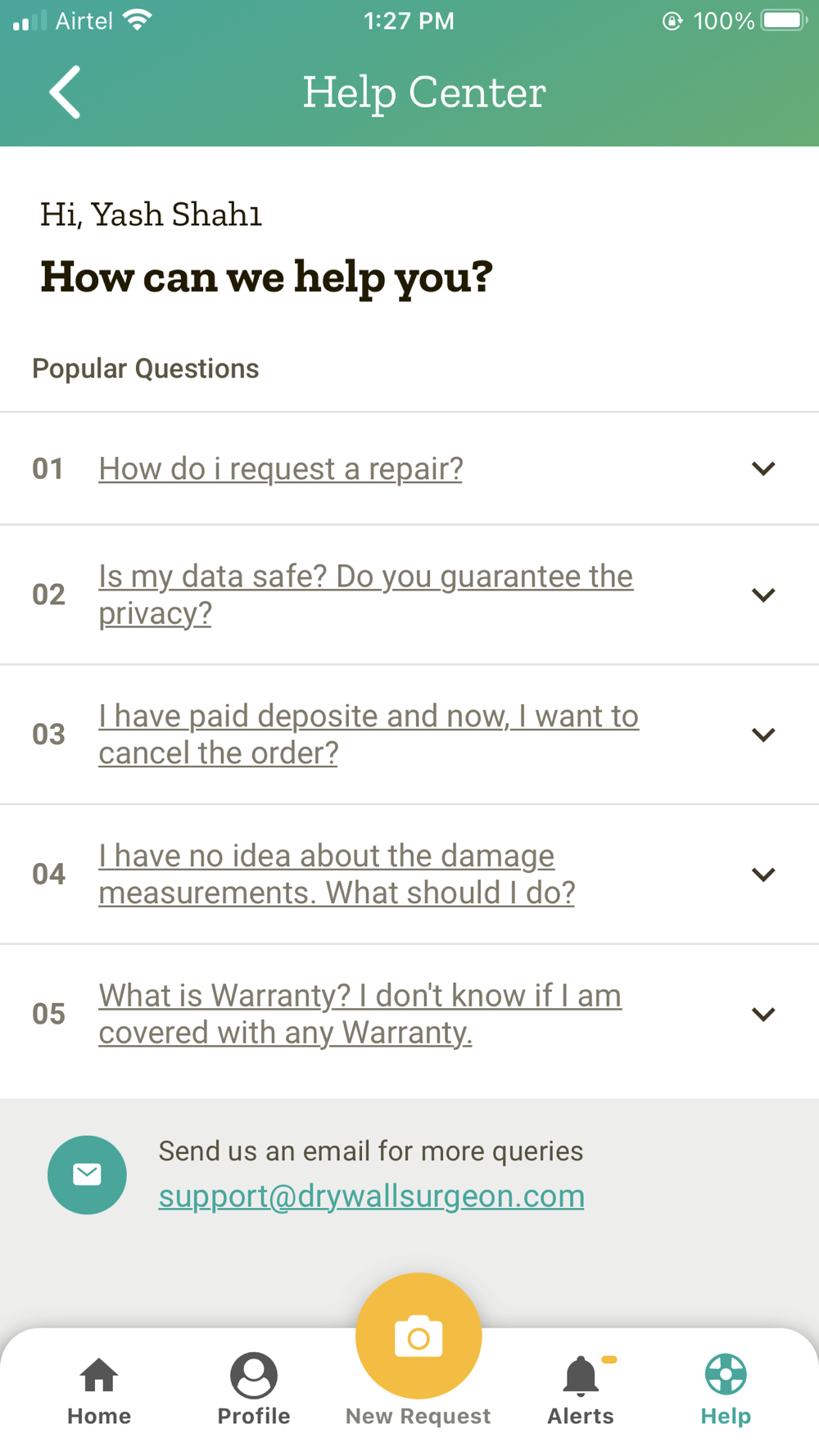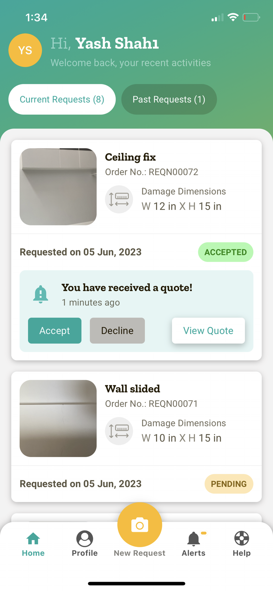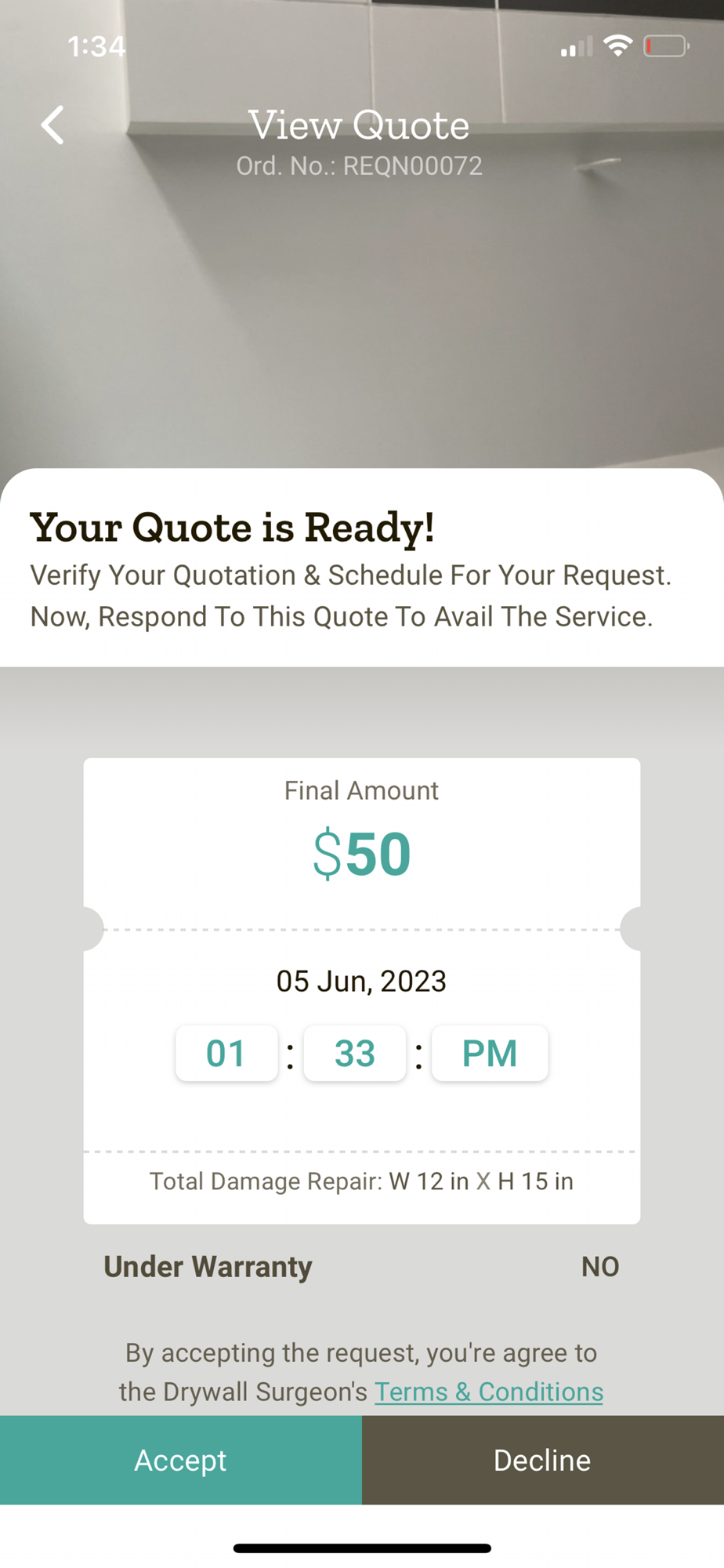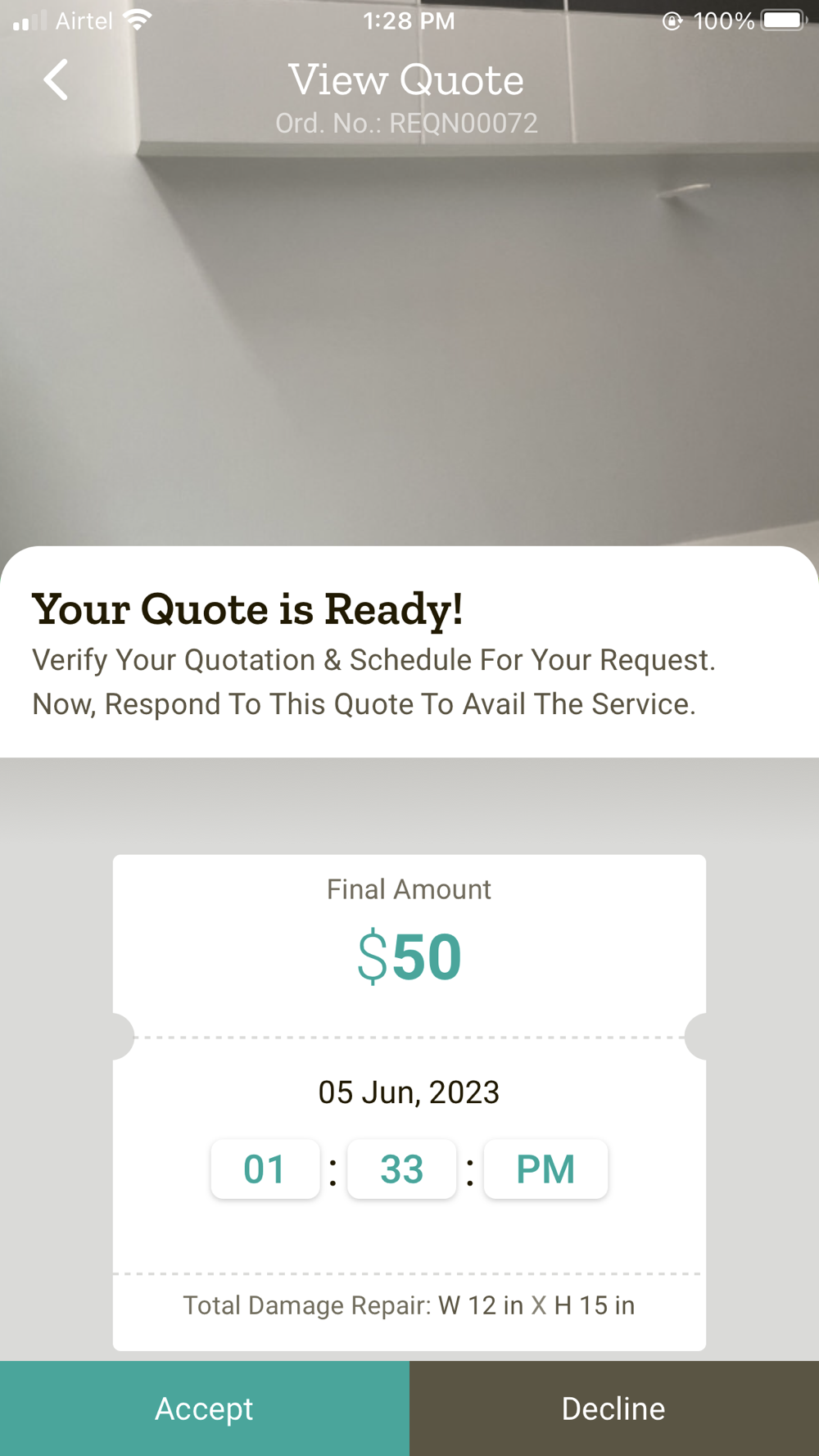 Hire an expert, experienced and certified Drywall Repair team in just few clicks. Scan your Drywall Damage and request a quote for the job. Once you accept the quote, a team of expert will be at your doorstep for the job.