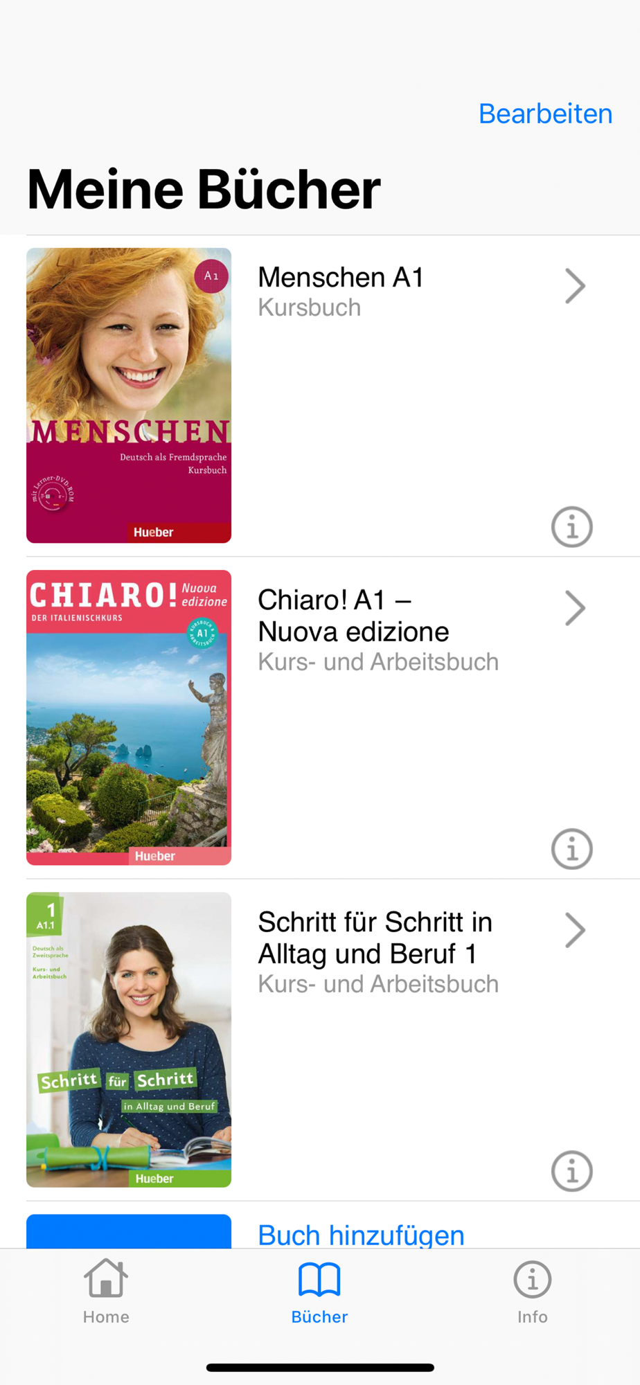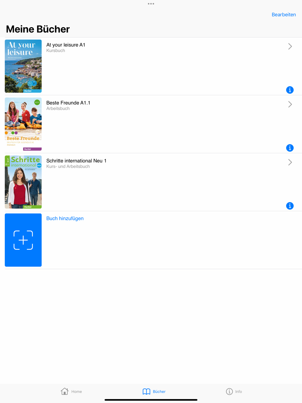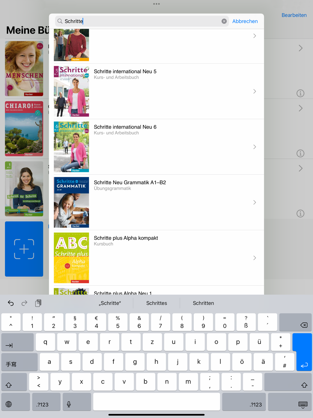 In the “Books” tab, choose “Add book”. A list of all available books appears. You can now scroll to the desired title – or simply enter the book’s title or ISBN in the search field.