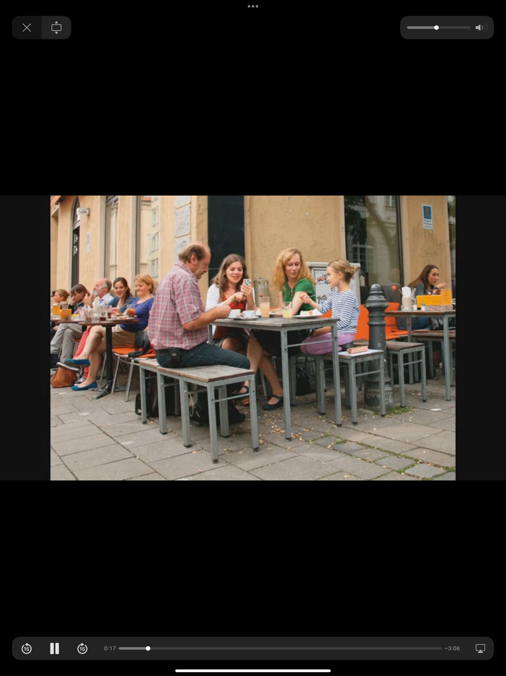 You can decide whether or not to save the video files (where available) on your device. Downloaded videos can be played at any time, even without access to the Internet. Media that is not downloaded will be streamed, for which the app needs Internet access. Even after downloading video files, you can change your mind at any time: Just go to “Books” and click on the info button to the right of the title.