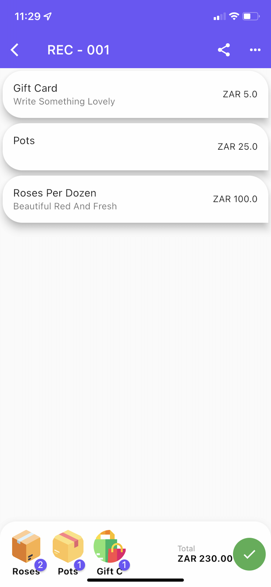 * Add products and use your default settings to generate a pdf of the receipt to email to whomever youd like.