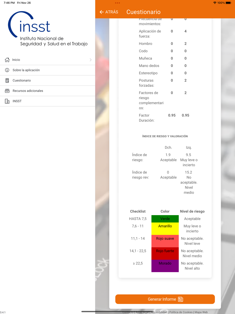 Esta aplicación permite evaluar de una manera sencilla la carga física asociada a los trabajos repetitivos. Es una actualización del OCRA CheckINSST.