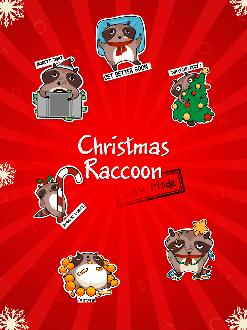 Christmas Raccoon stickers are here for the most wonderful time of the year! They are perfect for your Christmas and New Year’s texts. You can download them and see that special holiday atmosphere in your messages. Send it to your family and friends, your significant other, or your colleagues. These cute Christmas stickers will help you express yourself this holiday season.