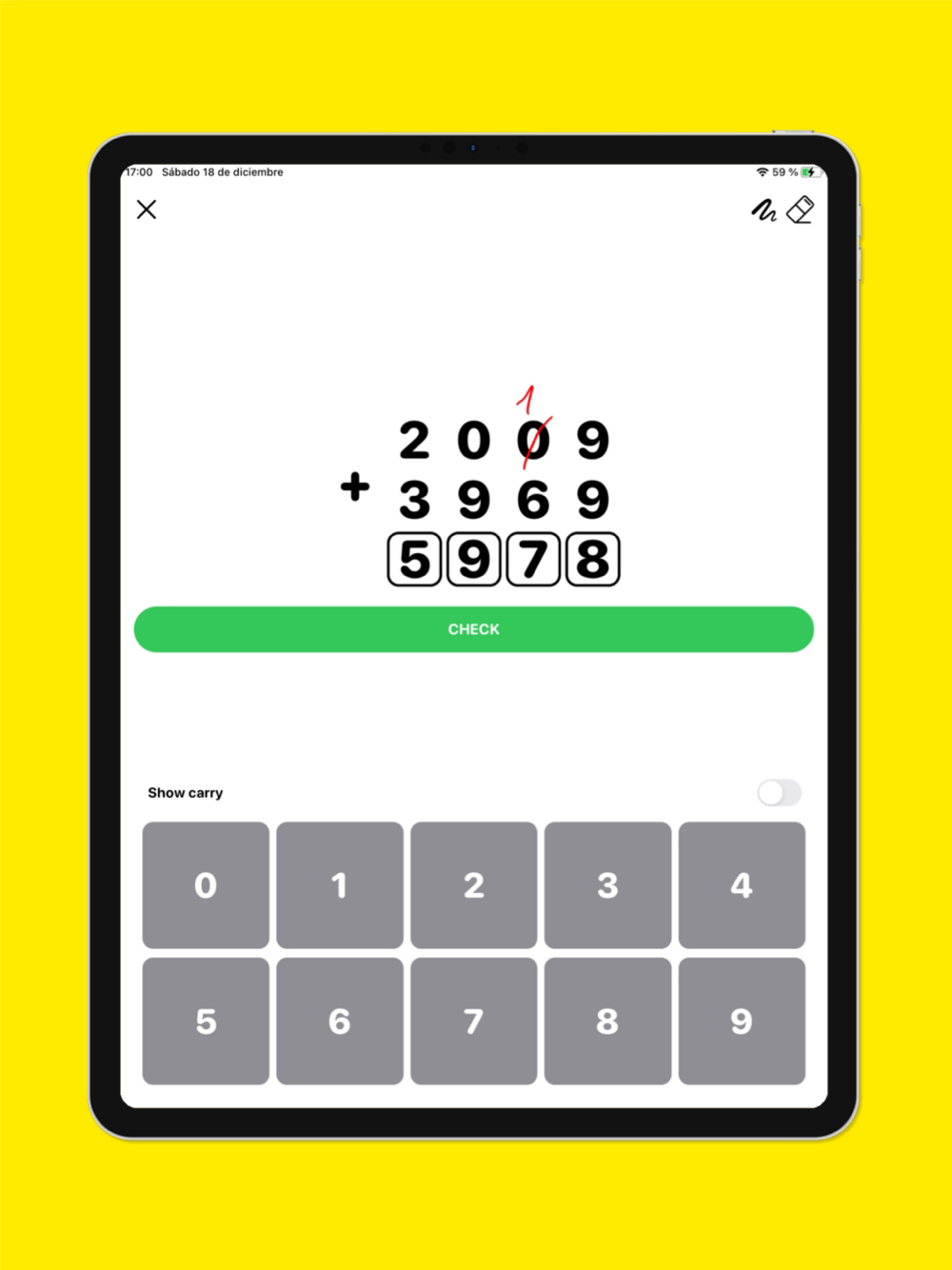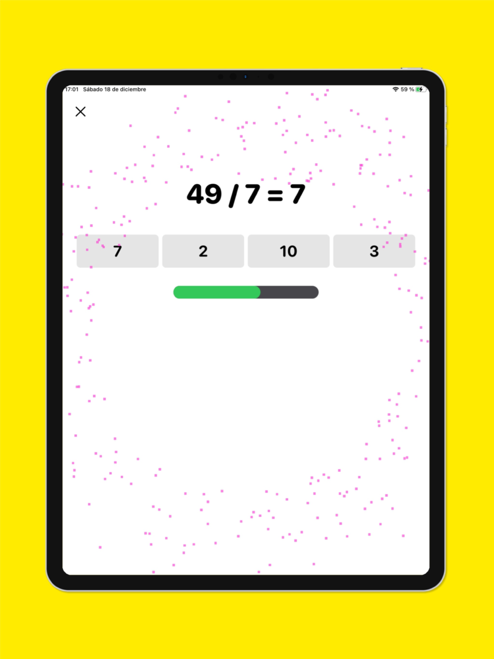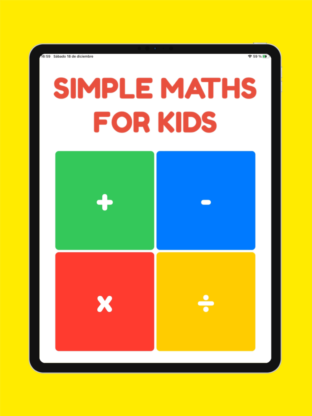 With Simple Maths for kids your child will be able to review addition with carries, subtraction with regrouping, multiplication and division. No limits, no ads and no payments inside the app.