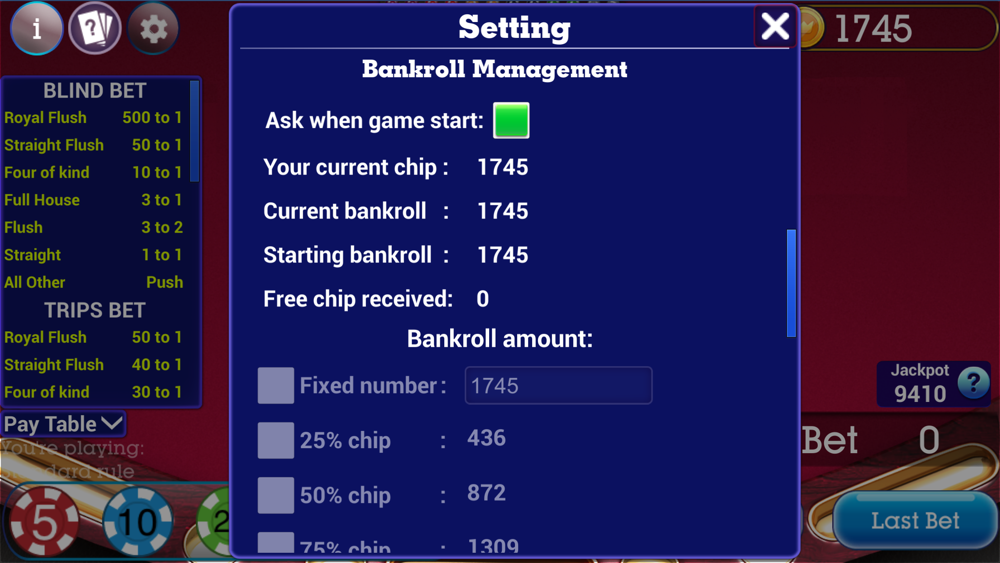 + Three Cards Poker: standard rule, face up variant and Ultimate 3 card.
