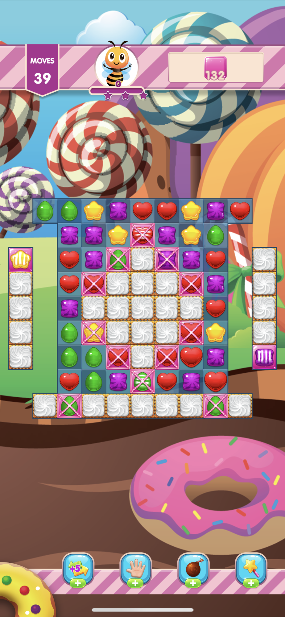 - Make lines of 4 or more candies to create special striped candies and marmalade boosters