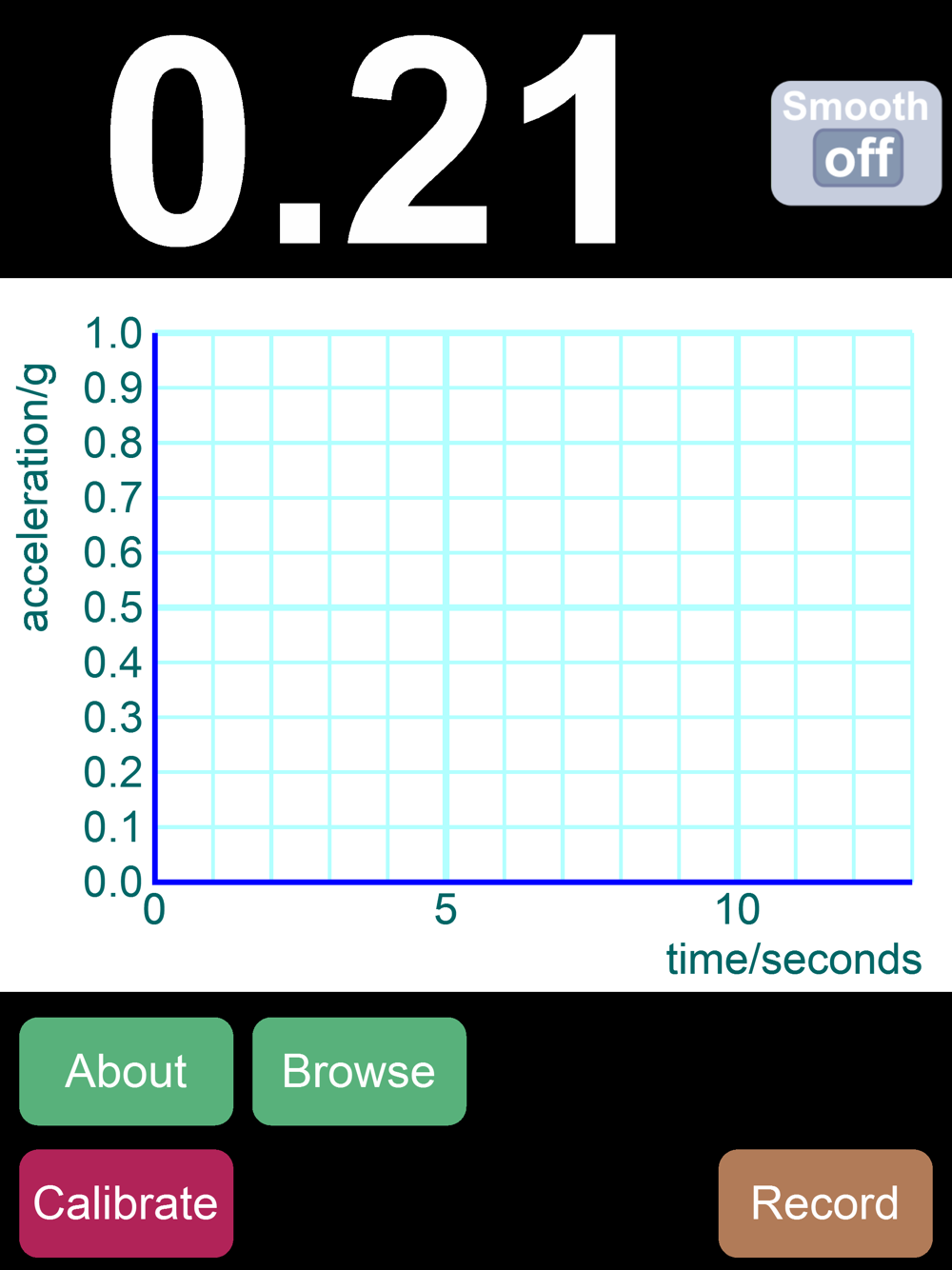 By default, unsmoothed data from your accelerometers is used. Tapping the 'Smooth' button continuously averages the last last ten readings. This helps to manage results.
