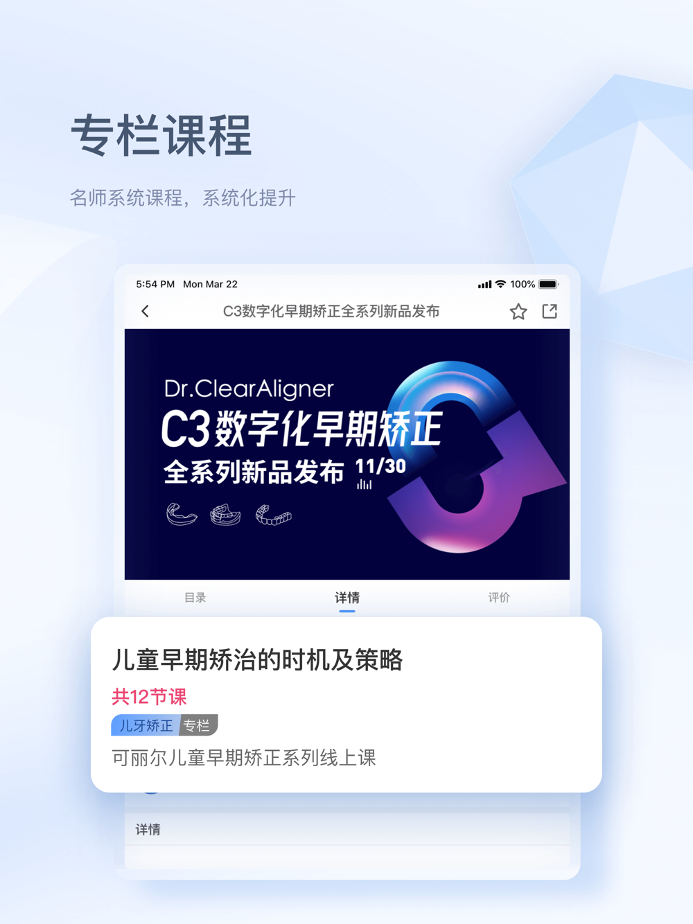 博恩云平台提供矫正与儿牙、牙周与种植、数字化影像、显微与根管、门诊与管理等体系课程,让口腔医生可以体系化、全面非零散地学习行业知识。