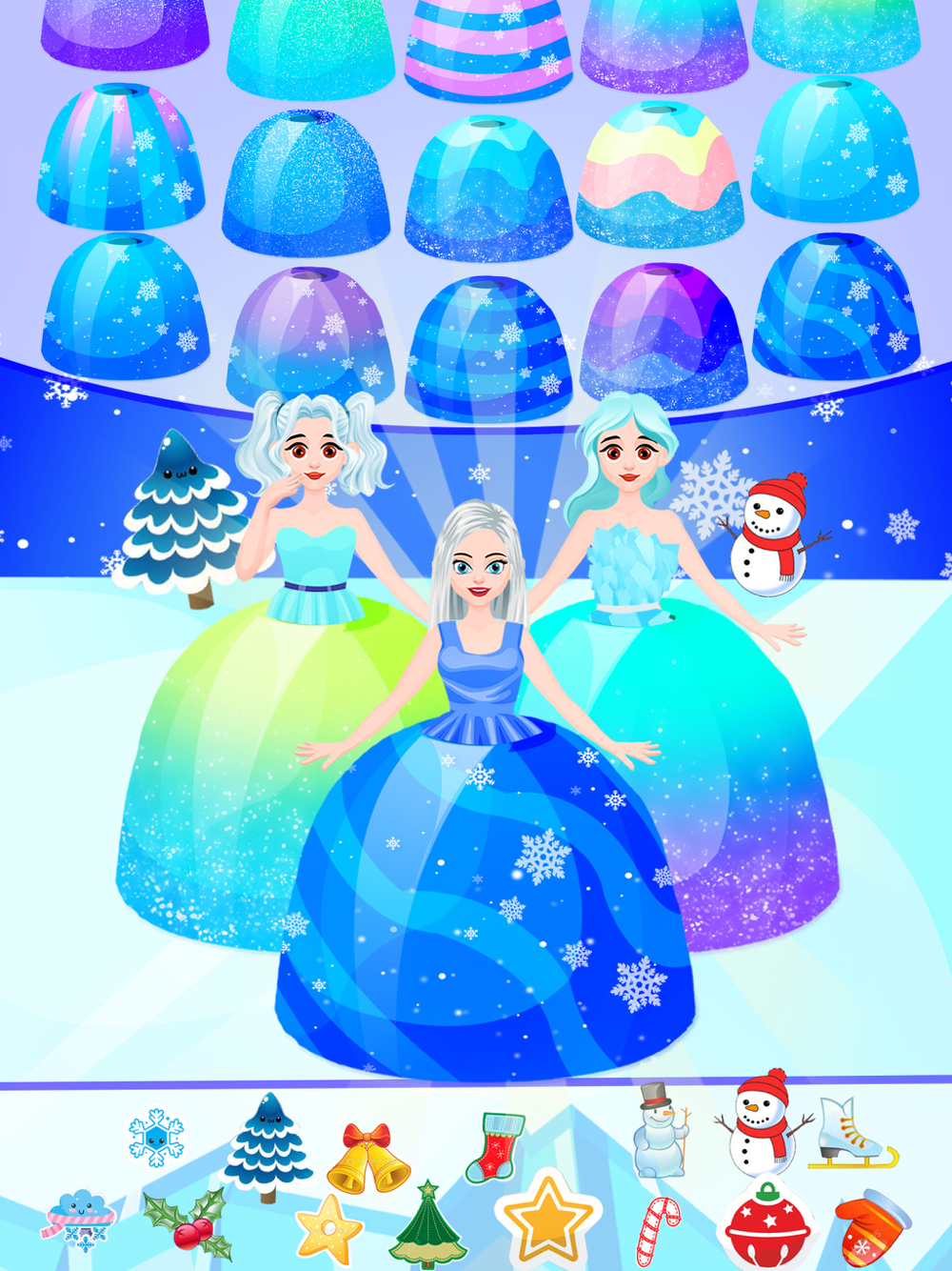 Make the frozen princess cake in the ice world. Do not freeze your hands.