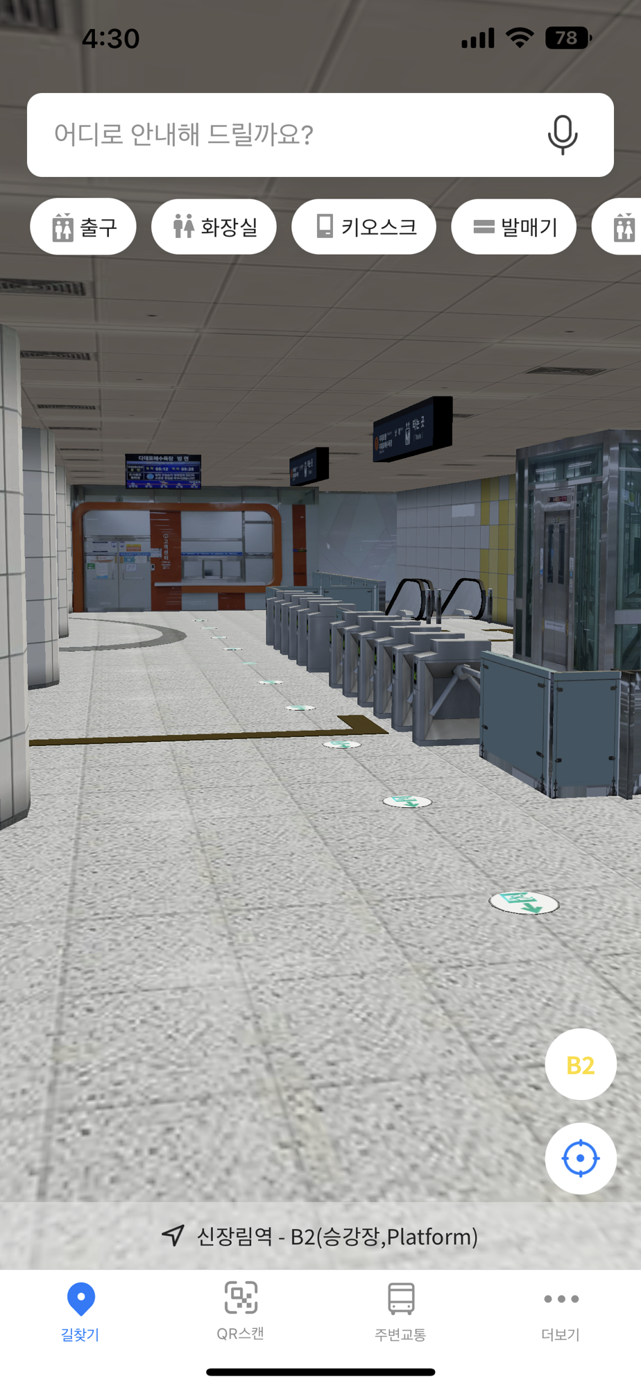 지하철 내비게이션 앱을 통해 지하철 역사 내에서 원하는곳으로 길을 찾아보세요.
