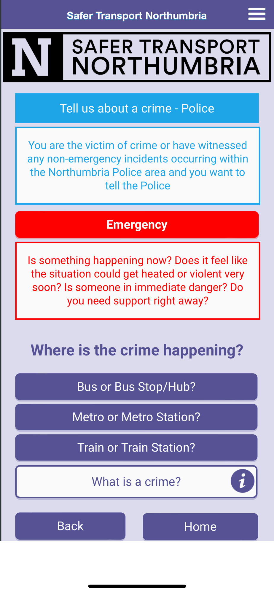Whether you commute via Metro or head out to the shops on the bus, this app has been designed to make it easier to tell someone about any crimes or concerns or get support.