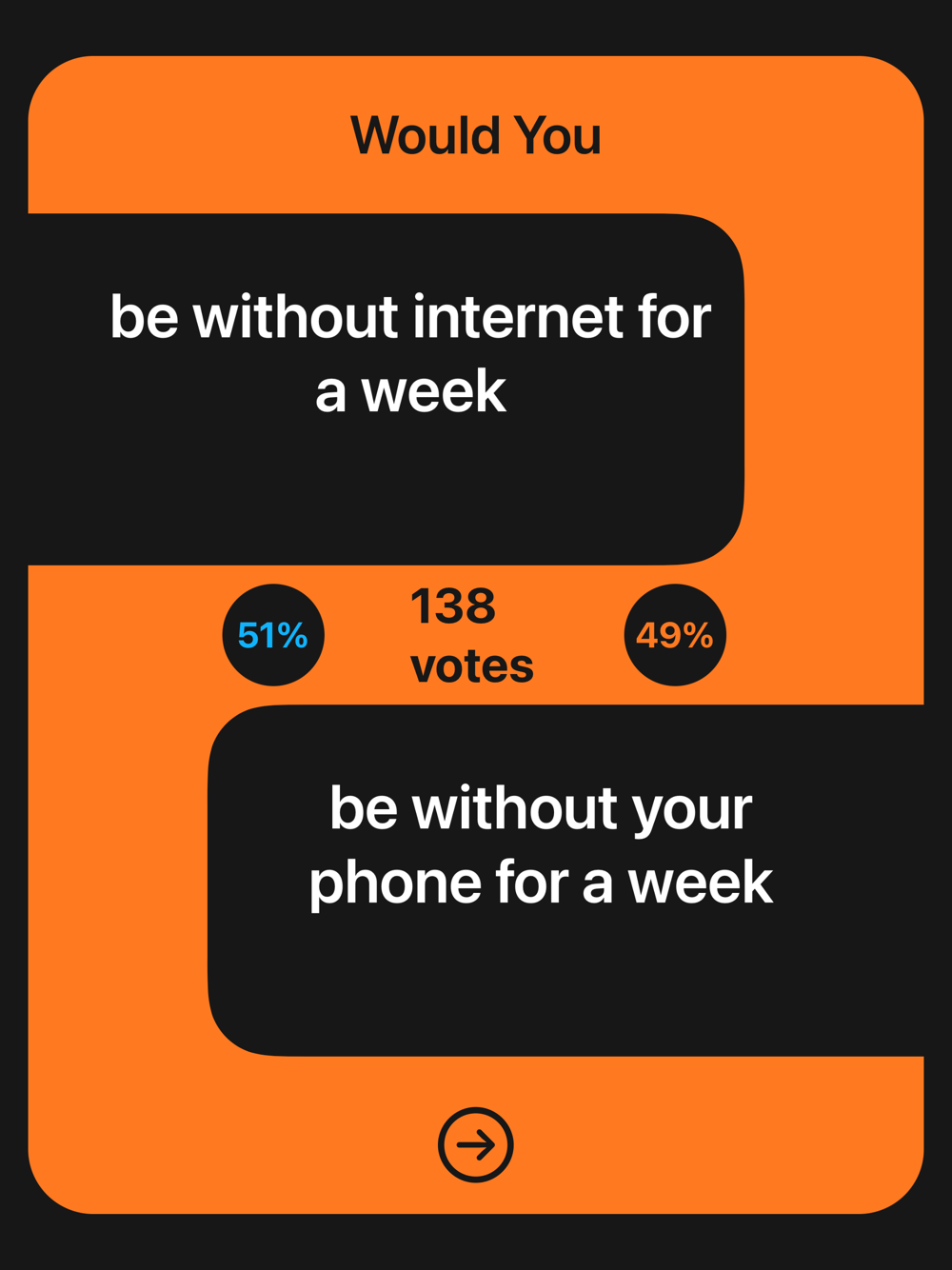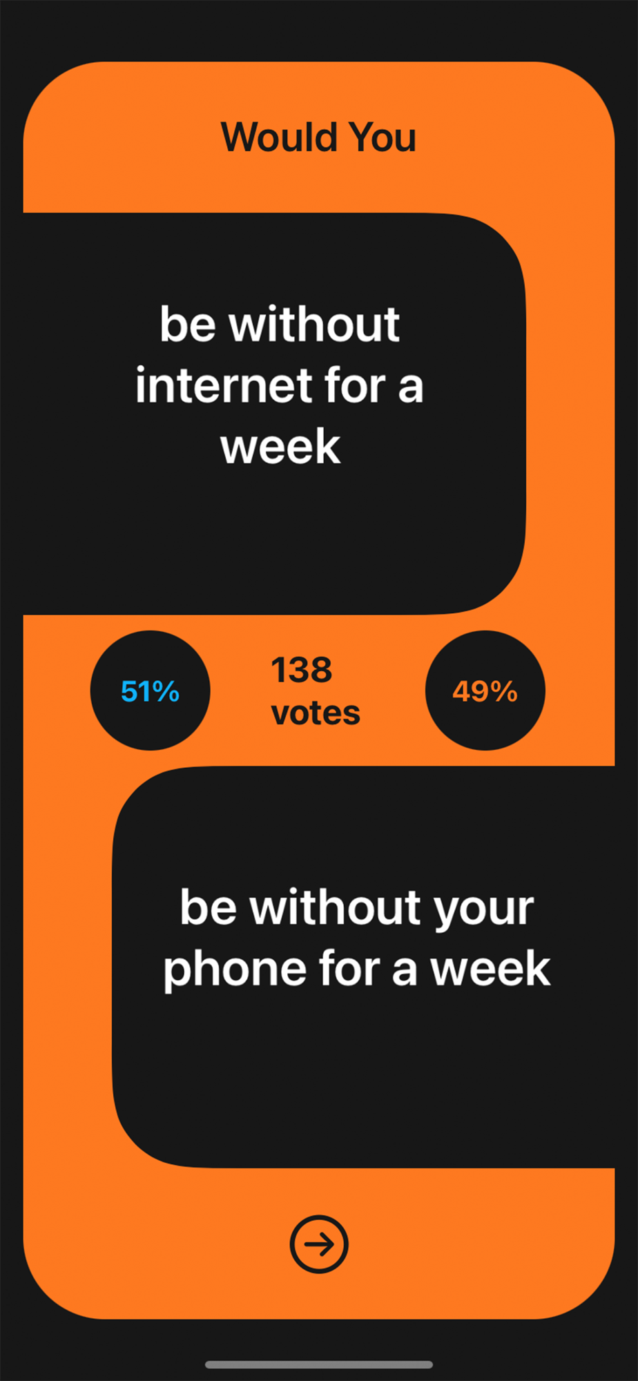 Play the best game of choice! Want to know what other would rather choose? Vote on over a thousand questions. The game is simple, fast, and fun! Play on road trips, when bored, or just for fun. Choose between this or that! School-aged version available separately.