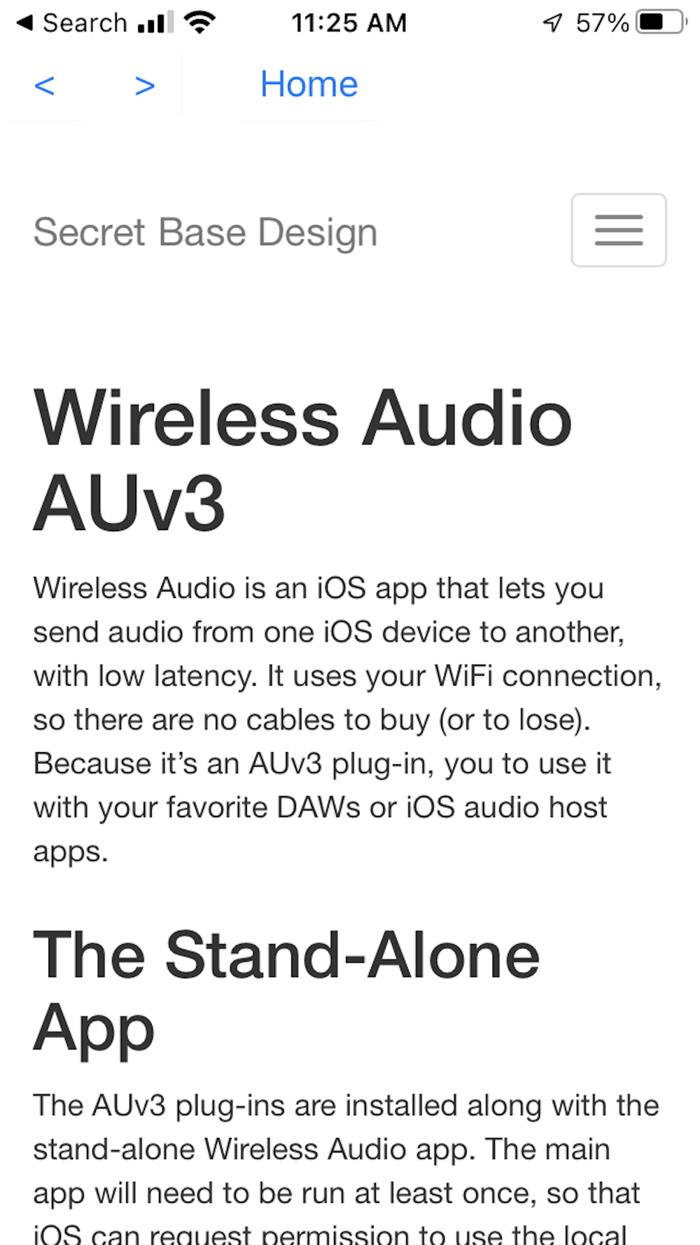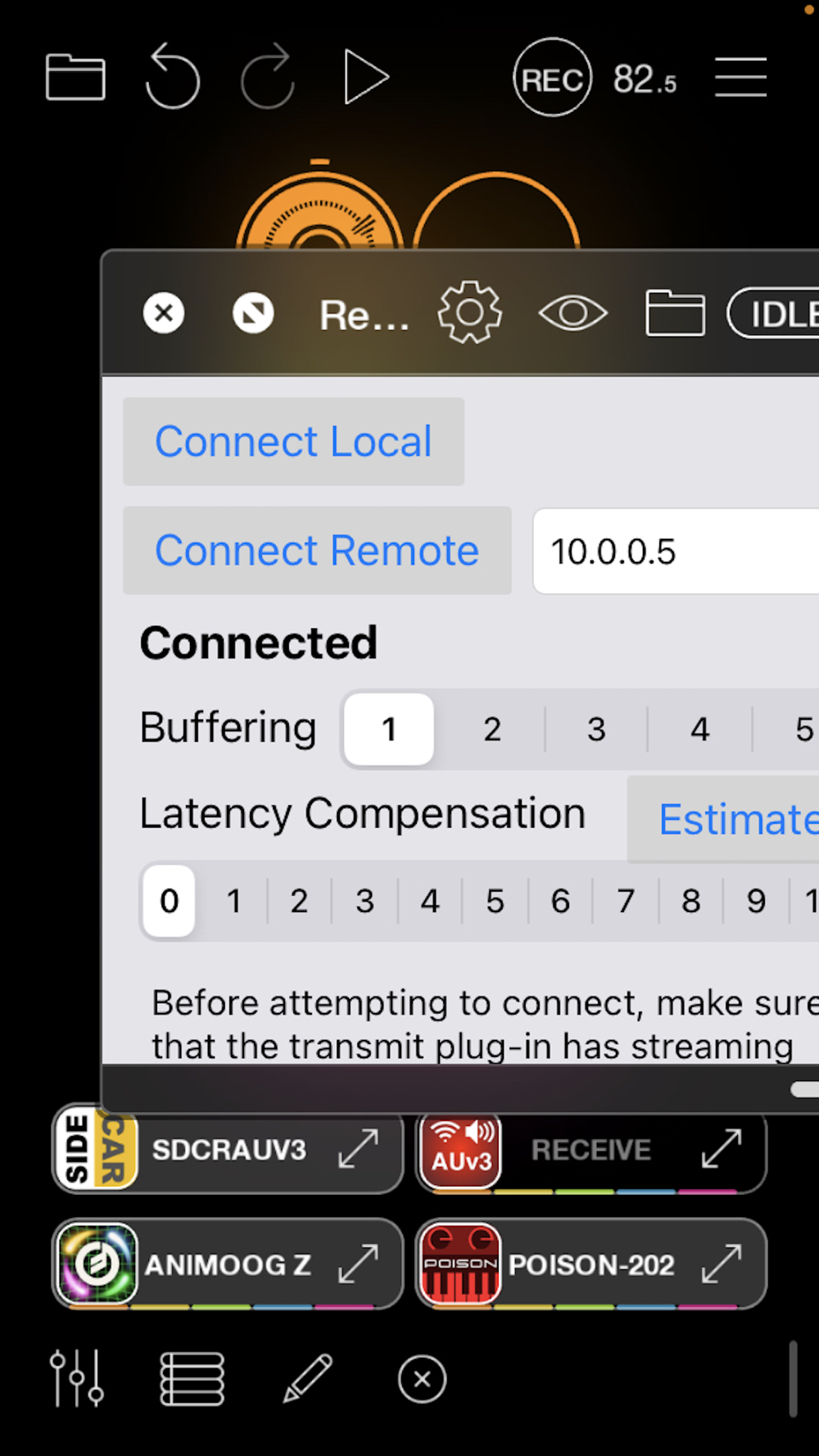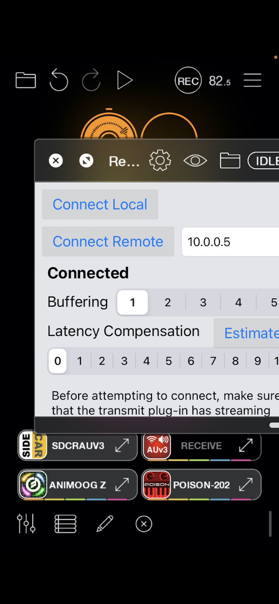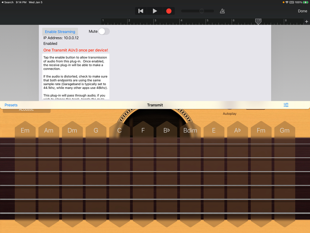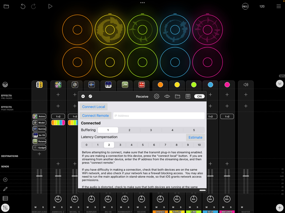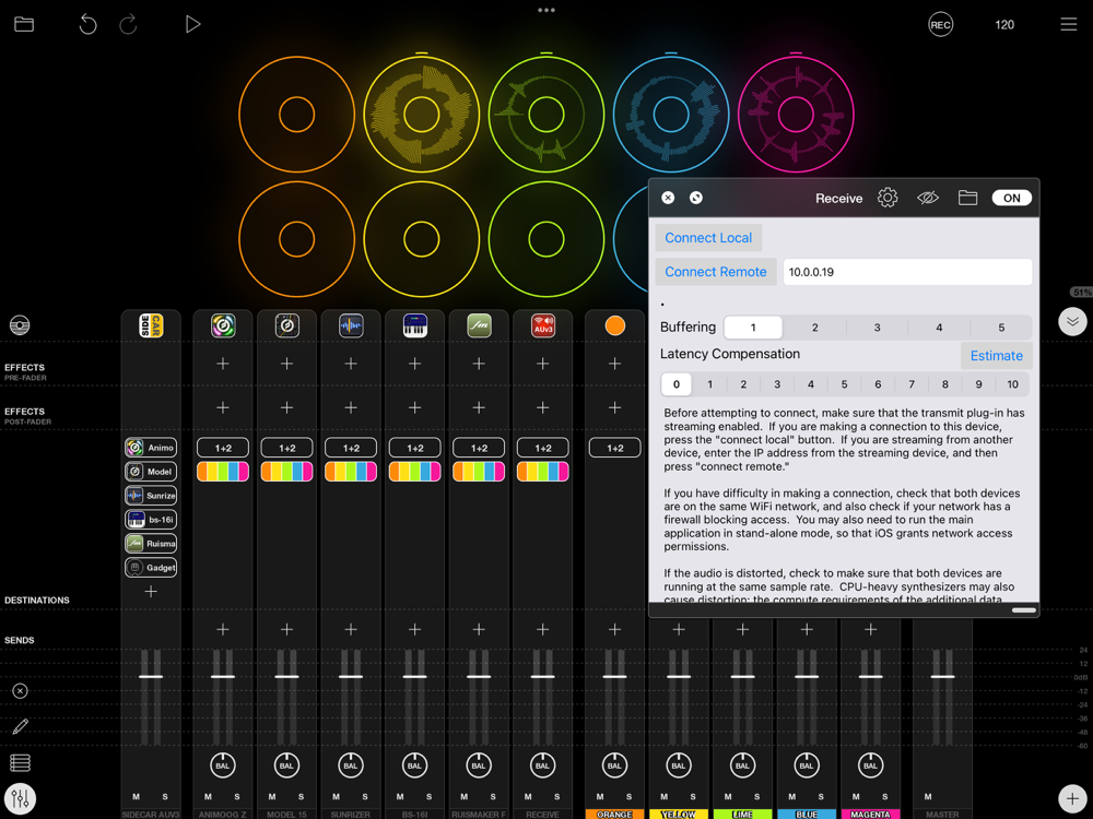 Wireless Audio AUv3 gives you an easy way to send audio from one iOS device to another using a low-latency WiFi connection; you can also connect audio unit hosts together -- either on a single device, or between devices using WiFi. There are no cables and boxes to buy (and to lose, or forget to take with you). Install the Transmit AUv3 onto an audio track of one host, the Receive AUv3 on the input slot of the audio track of another host, tap `connect,' and audio will be sent from one place to another with surprisingly low latency.