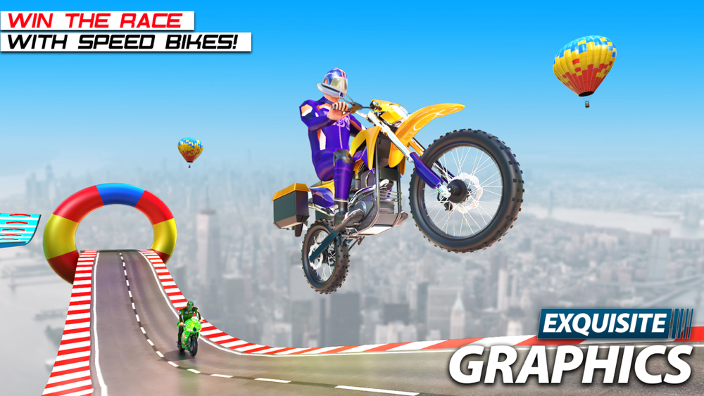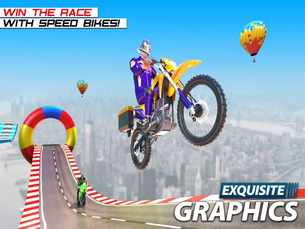 Crazy smart bikers and super flying jumper driving stunt environment make this game more interesting.You will feel like you are real smart bike driving for your life on real crazy cloud & mid-air heights to accomplish impossible stunts racing missions.