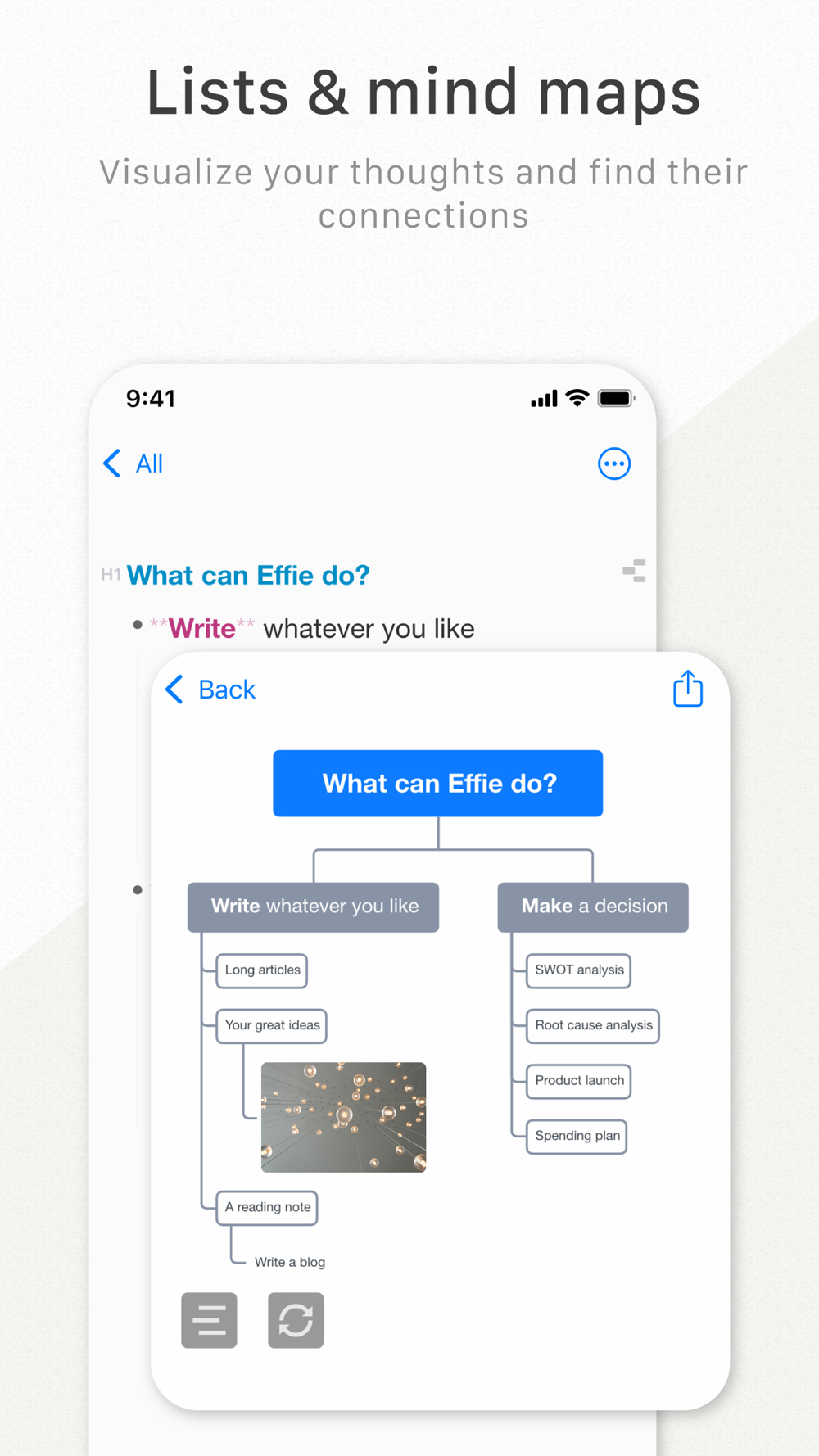 From a simple inspiration point to a complete mind map, and then to a brilliant article, it empowers you to transform your ideas into actual text.