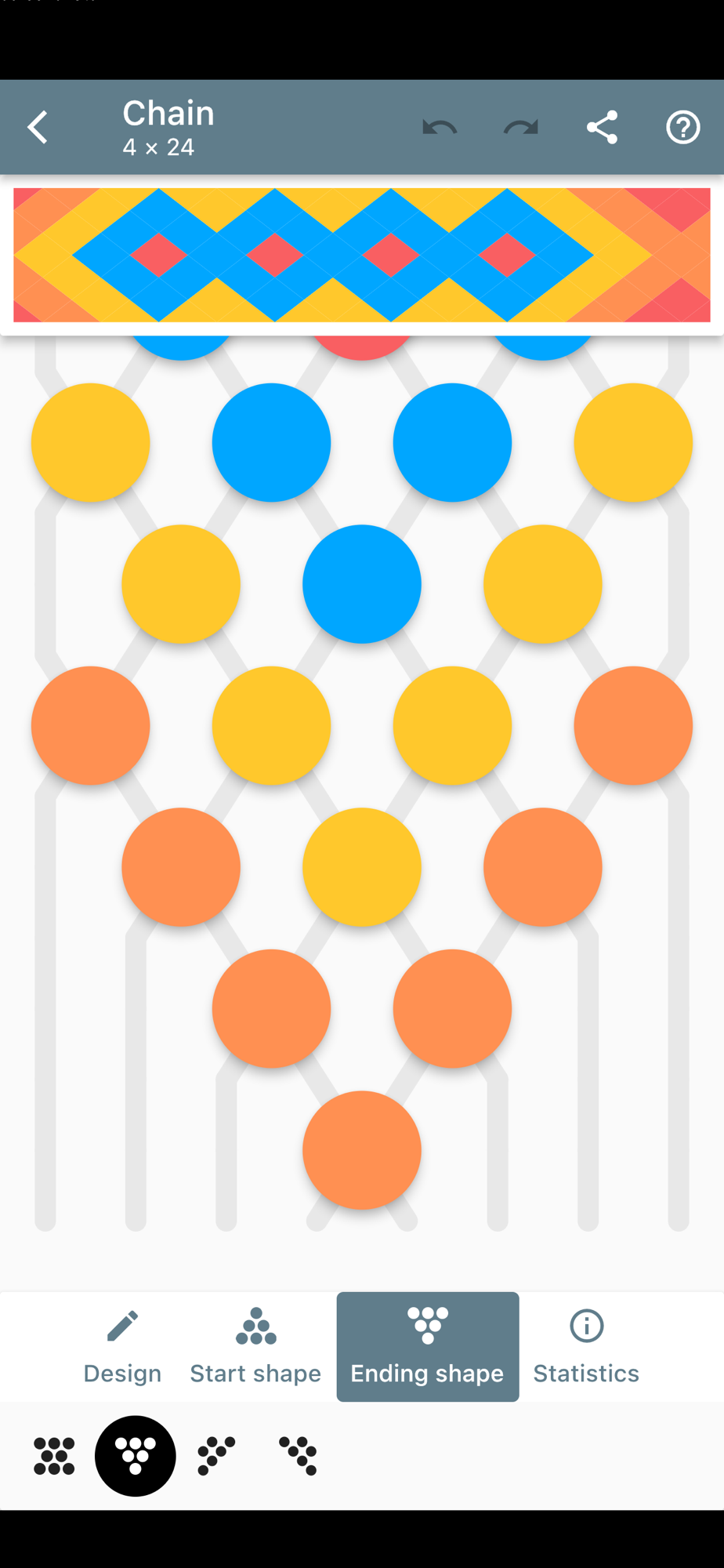 You don't need to think about knot types, threads and directions - just color the knots, and the application does the magic, it generates the pattern for you.