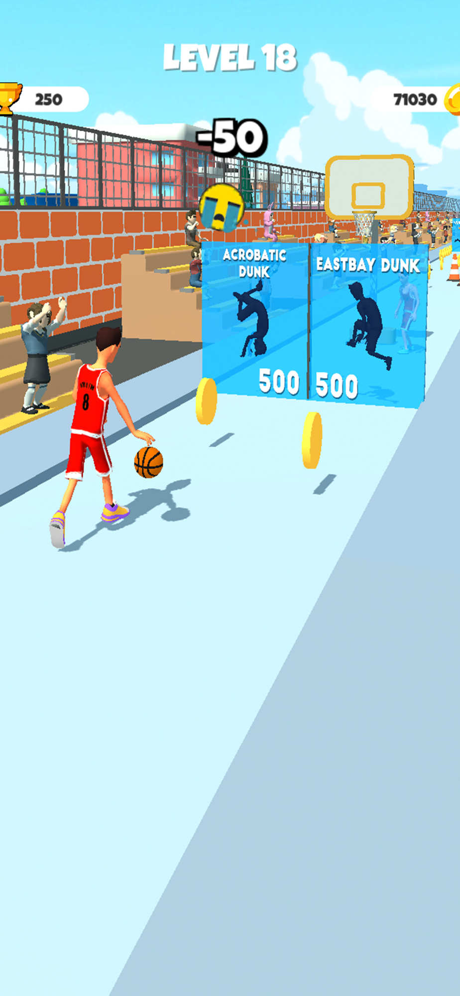 How good are you at basketball? You have been challenged to do the toughest moves. Choose the move you want to do by going through the doors, complete the move before the time runs out. The harder the move, the more points. Easy mechanics, simple gameplay, eye-catching graphics.