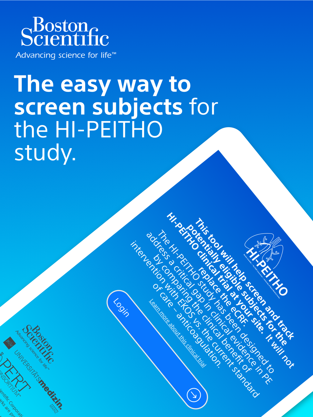 The HI-PEITHO mobile application is a reference tool intended to assist Boston Scientific authorized clinical trial centers participating in the HI-PEITHO clinical trial. This app is used to support the preliminary assessment tasks related to the trial and includes the following features: