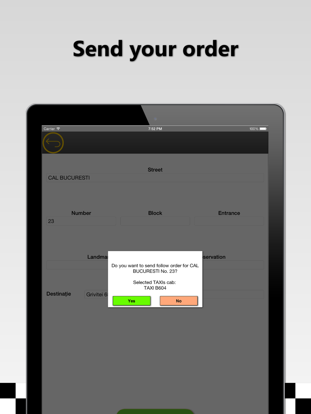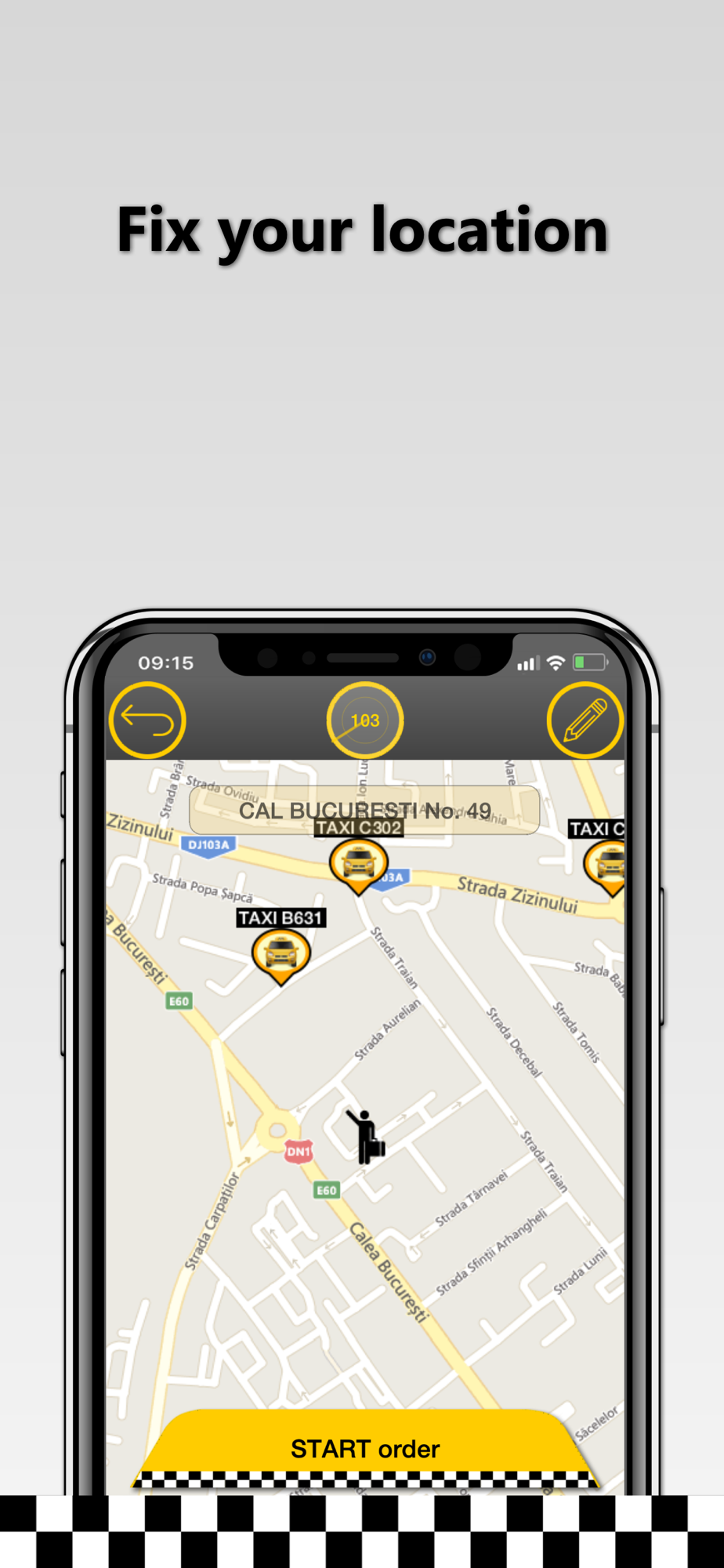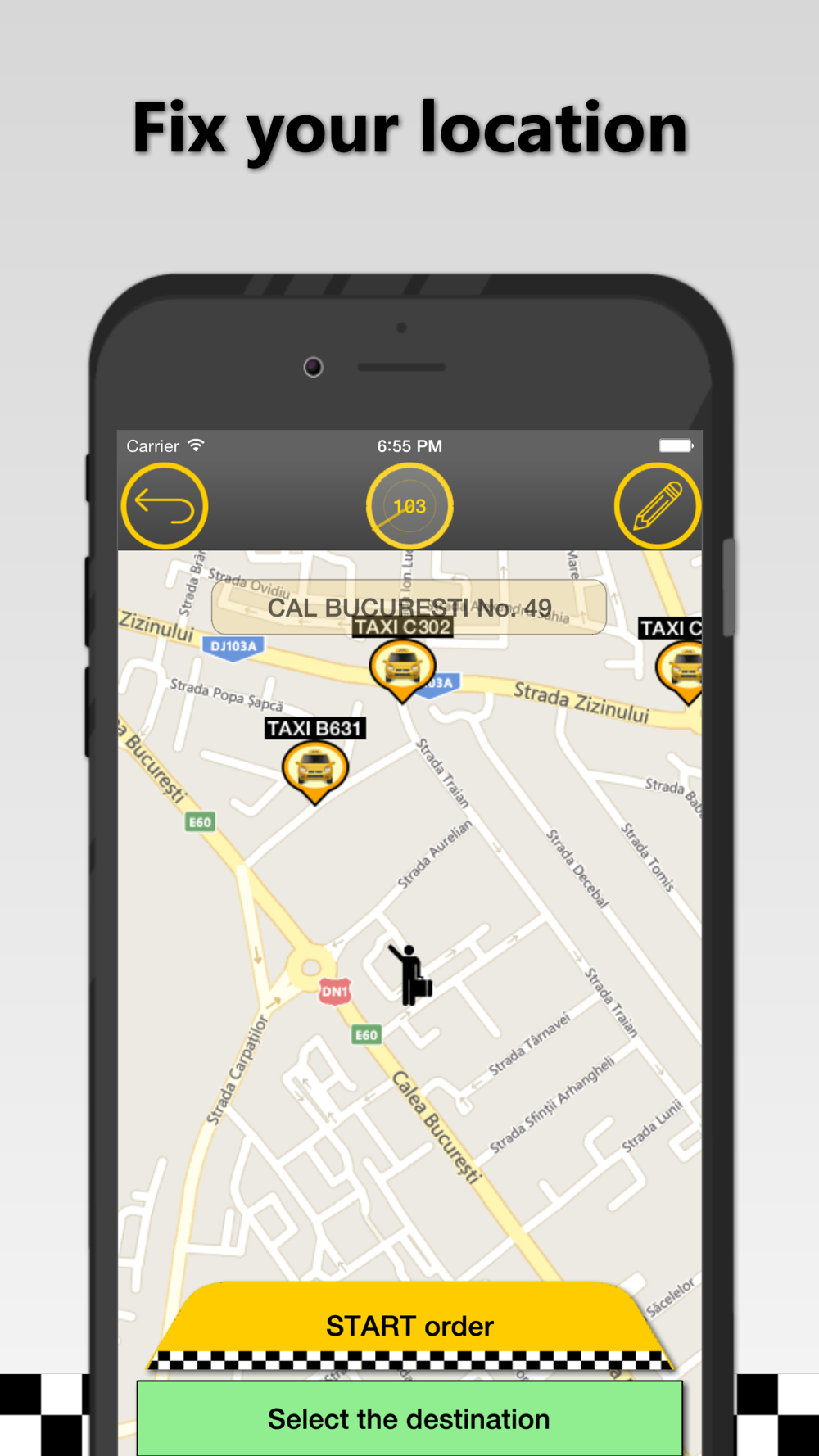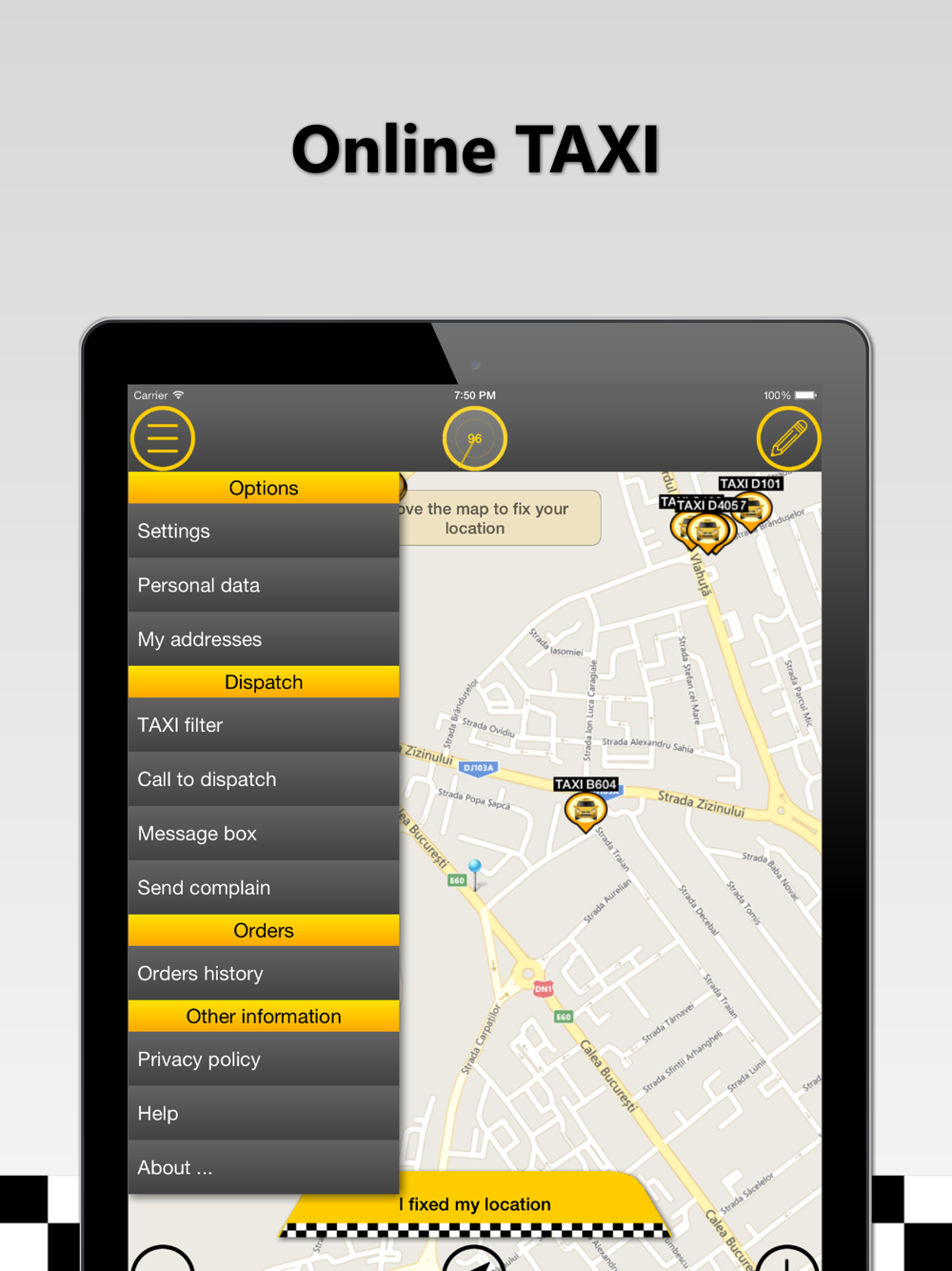 - The location of the terminal is automatic, for adjustment move the map so that the location for TAXI arrival is the desired place.