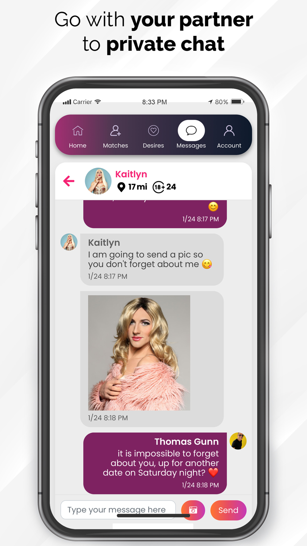 Get away from the outside world, just the two of you, and you could even share your very private photos and secrets with each other. At this point to go on a date is only one step away and depends on you how it will turn out.