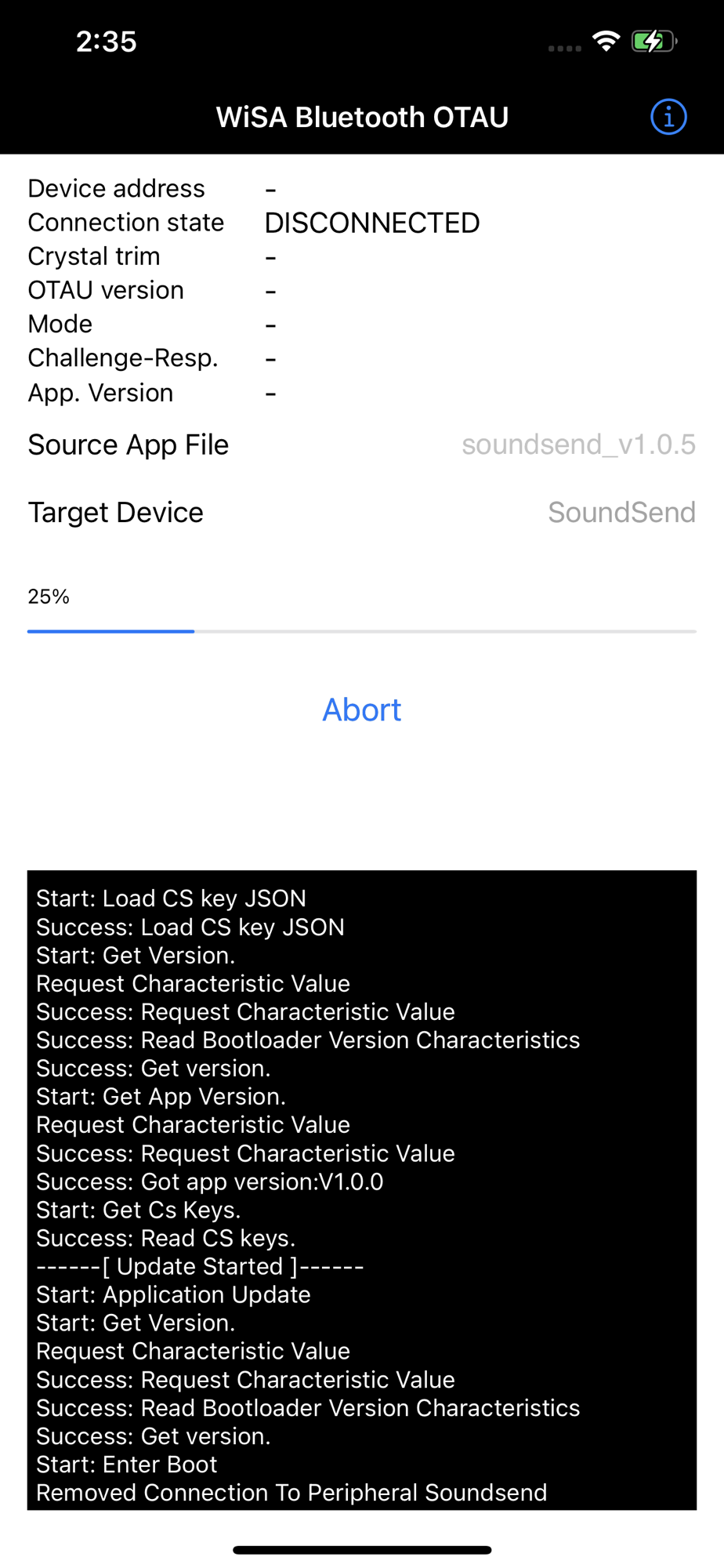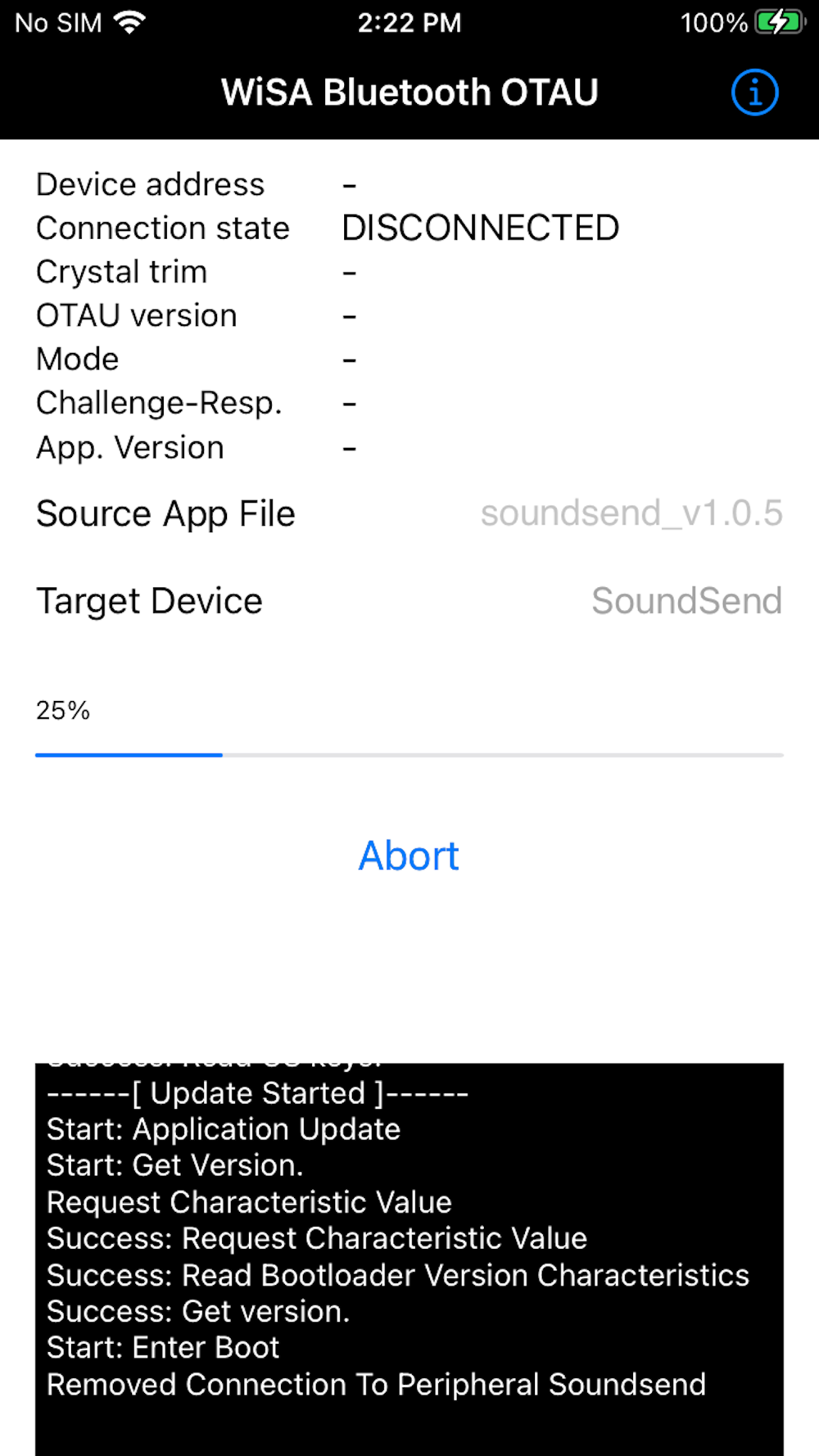 * iOS-specific installation instructions can be found at support.wisatechnologies.com under "Download the SoundSend Latest Firmware." Please note that the Bluetooth Firmware for this update is embedded in the application.