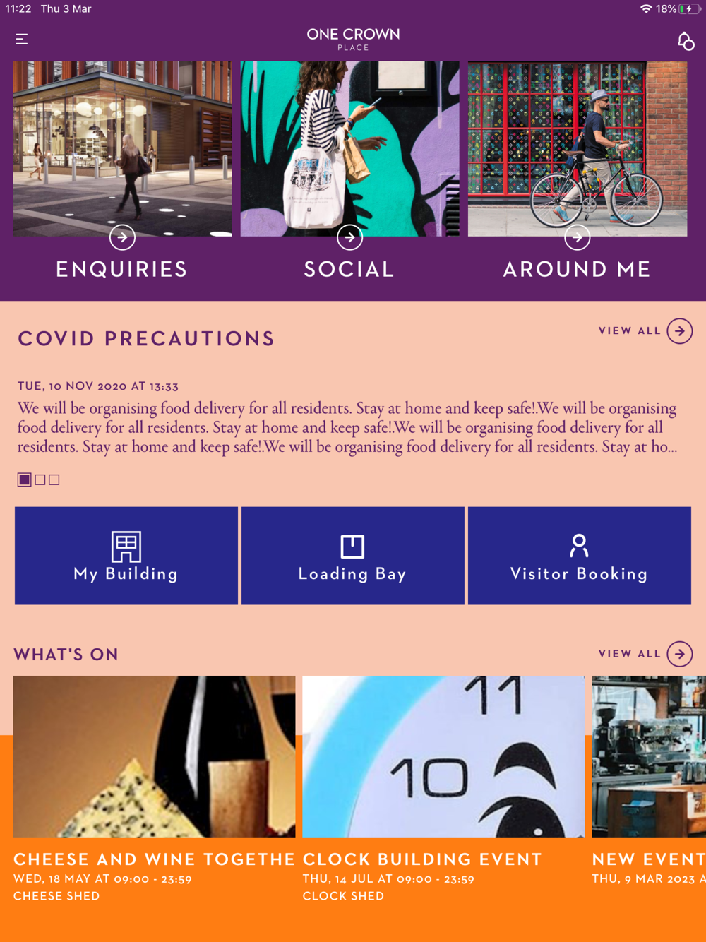 It will allow you to communicate with the estate team, pre-register visitors to reception and book deliveries into the loading bay.