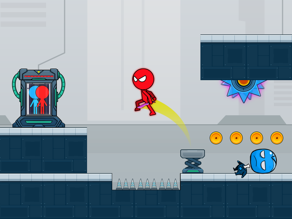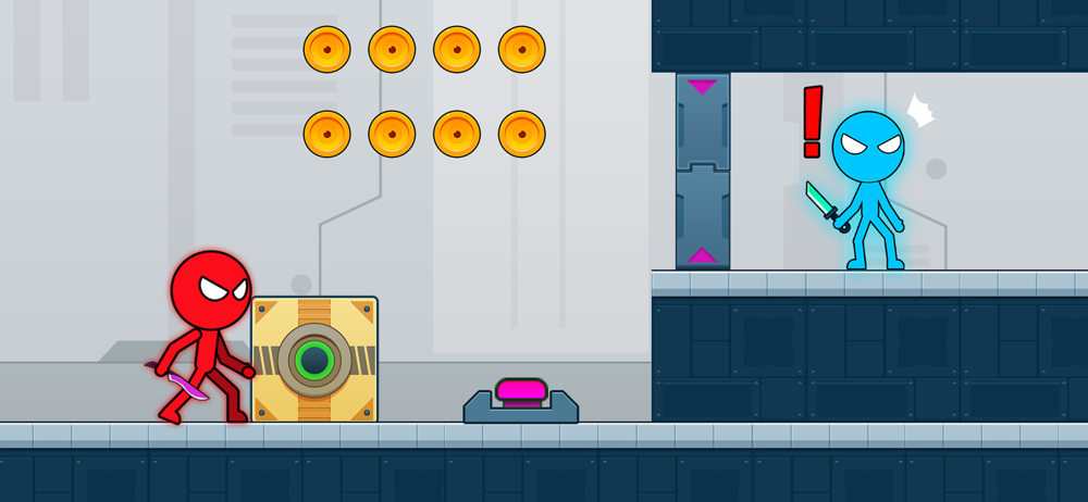 Red And Blue: Mighty Adventure is an addictive puzzle game where you have to embody both characters. Control both hero at the same time and use the buttons to move, push boxes, and collect coins to find enemies in the labotary.